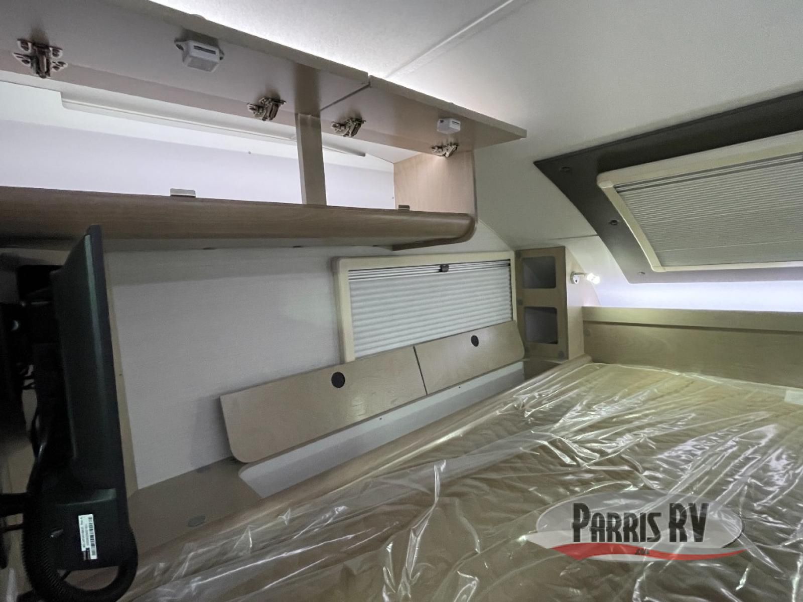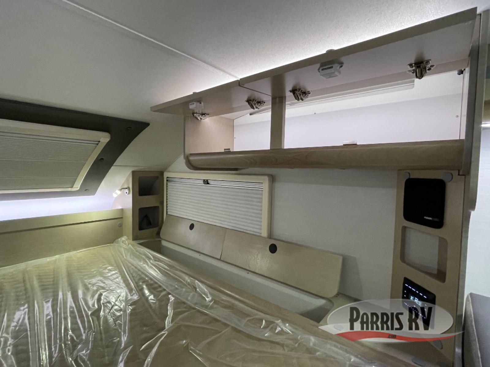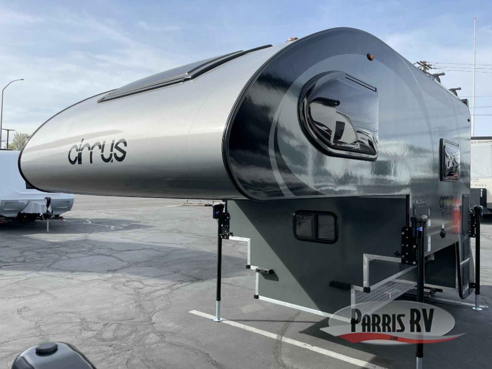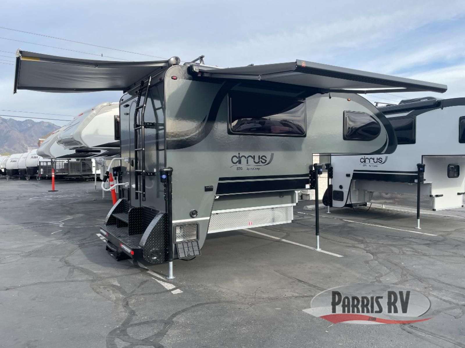 You will find a pass-thru window on this Cirrus truck camper. The exterior has a Maggie roof rack for bringing along extra gear, and there is a motorized 120" side awning to protect you while you're living life outside. The convection microwave/oven is going to make your meal prep easier and faster, and the air conditioning will keep this camper's interior at a desirable temperature even when it's hot outside. This model also comes with a Bluetooth media center with 19" TV and a great sleeping area with the Froli sleep system.