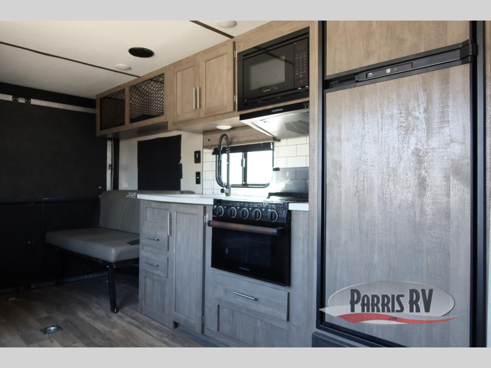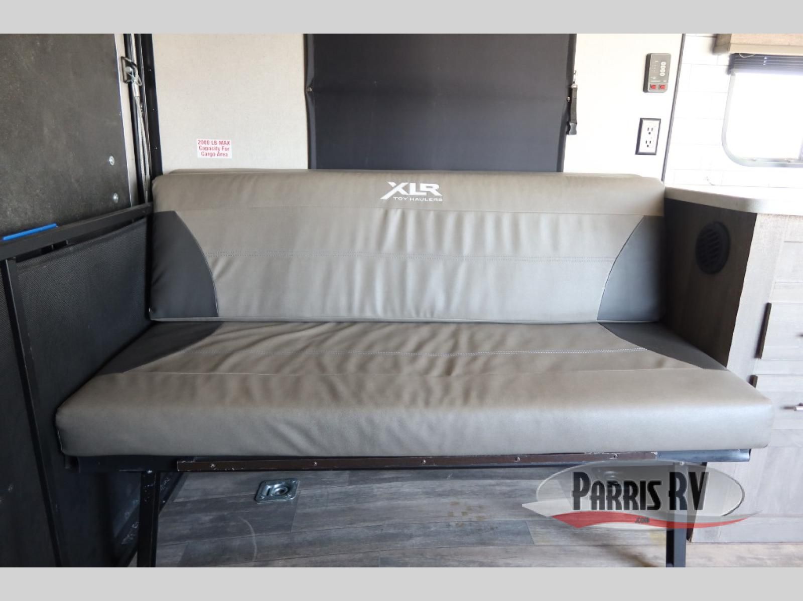 Get out there and explore in style with this XLR Micro Boost toy hauler! With the flip-up sofas and free-standing table, you'll have a comfortable place to enjoy a hearty meal that has been prepared on the three-burner cooktop, and the residential sink will make it easy to clean up after dinner. You will also be able to rest easily each night with the queen-size bed that has been included in the front private bedroom.