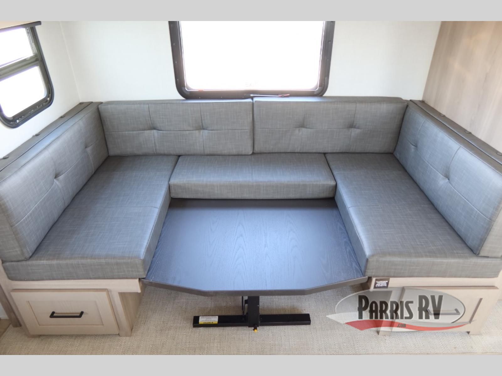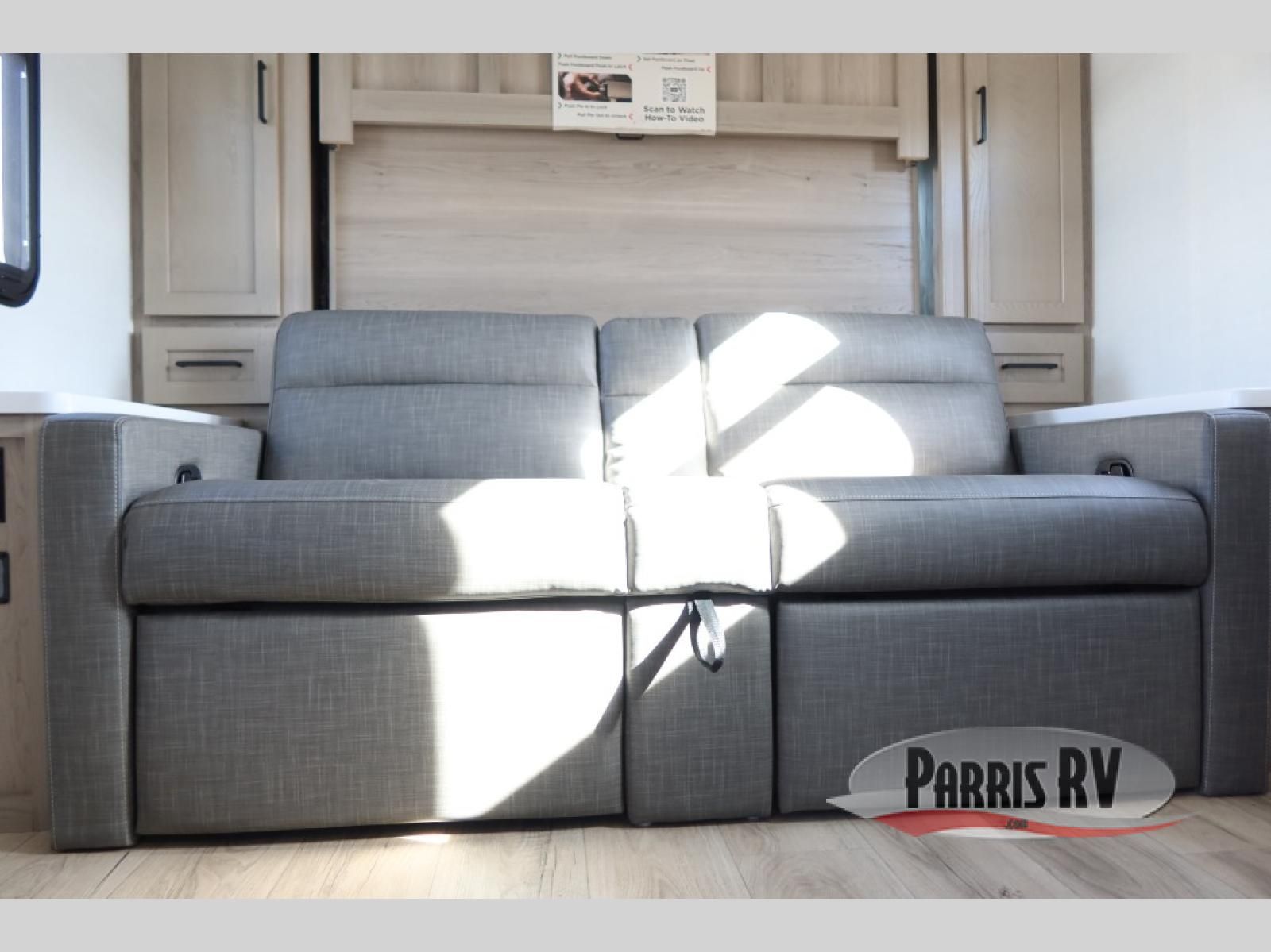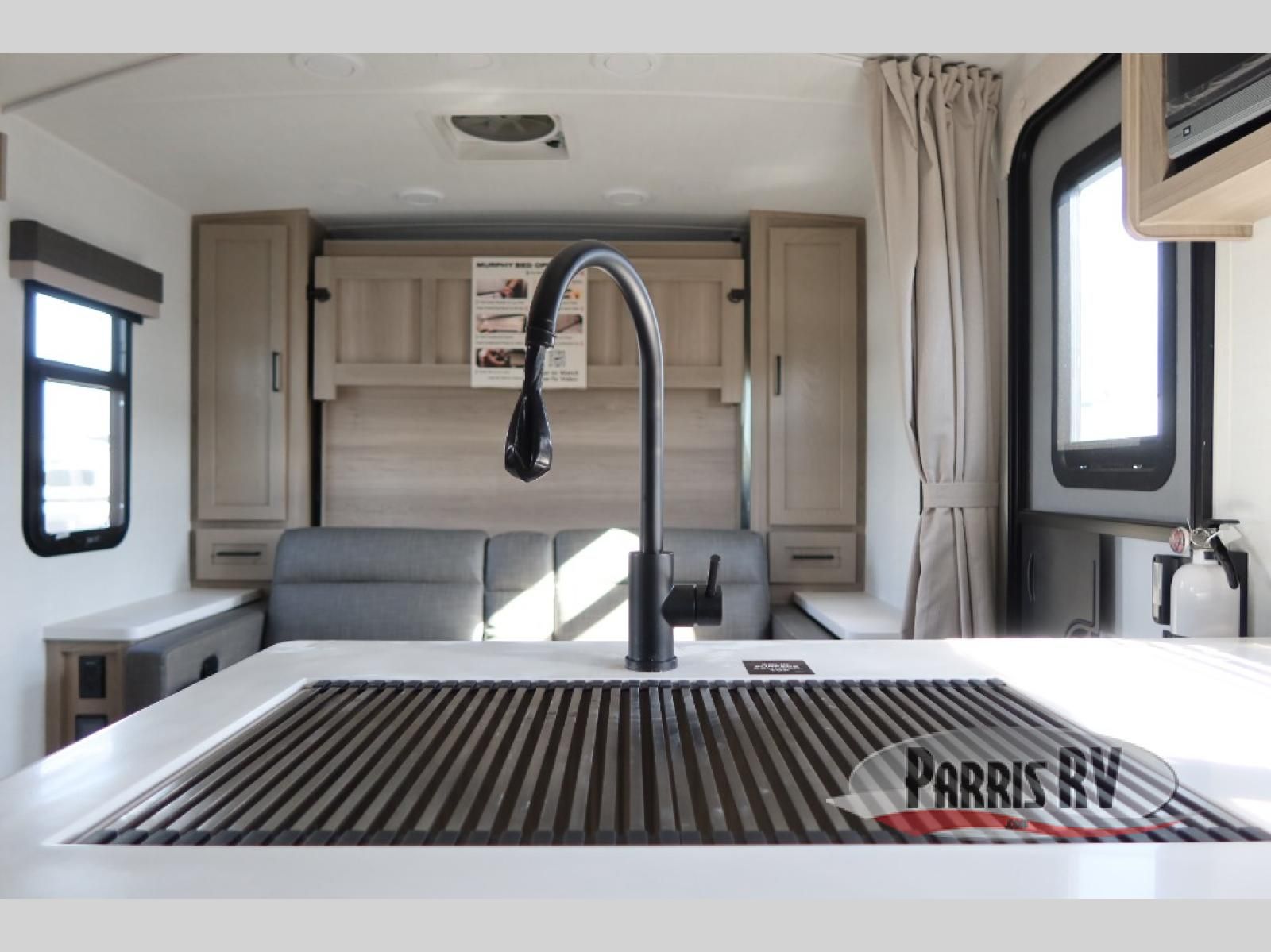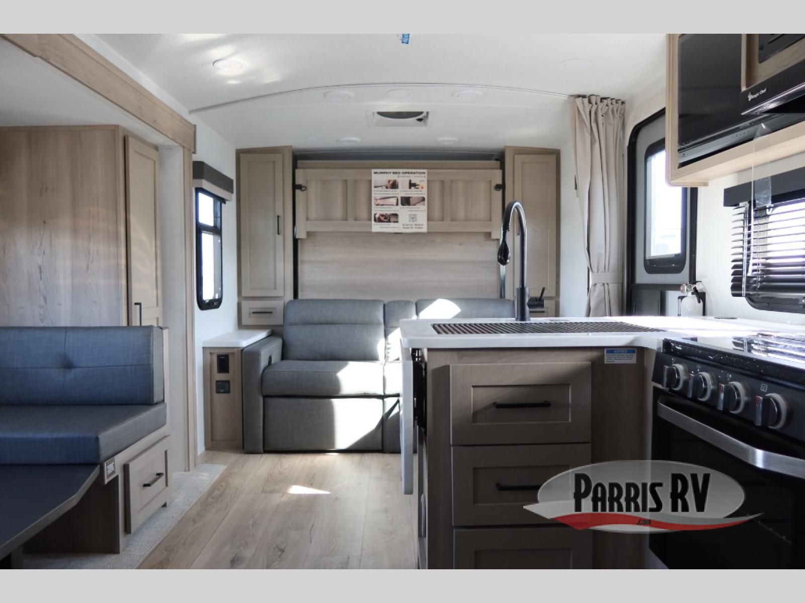 Finally, a lightweight travel trailer with double-size bunks for the kids or your guests! You'll find the versatile Murphy bed up front will be super convenient when you need more space to move around, and the 72" sofa will provide comfy seating space when the bed is put up. This model also includes a U-shaped dinette slide perfect to dine around, play games, and sleep additional guests. A TV in the main living area will allow you to watch your favorite shows in the evenings, or you may just find yourselves outdoors under the 18' power awning with LED lights. And check out the pass-through storage, plus additional exterior storage for your hiking gear!