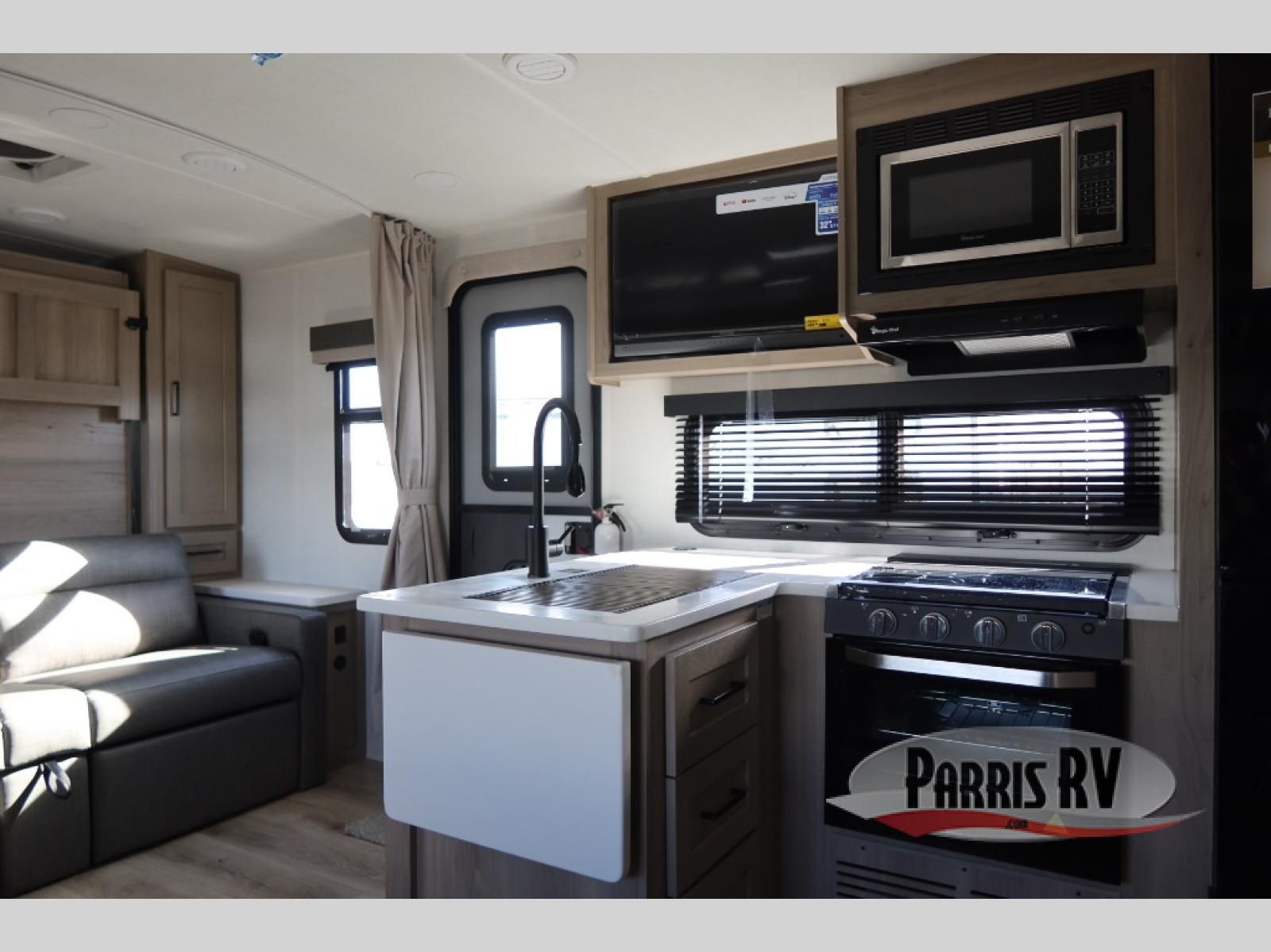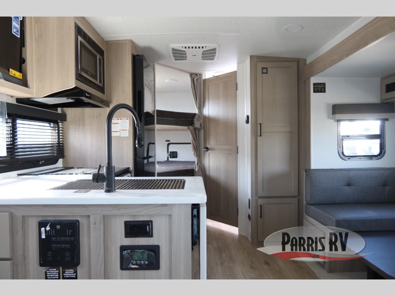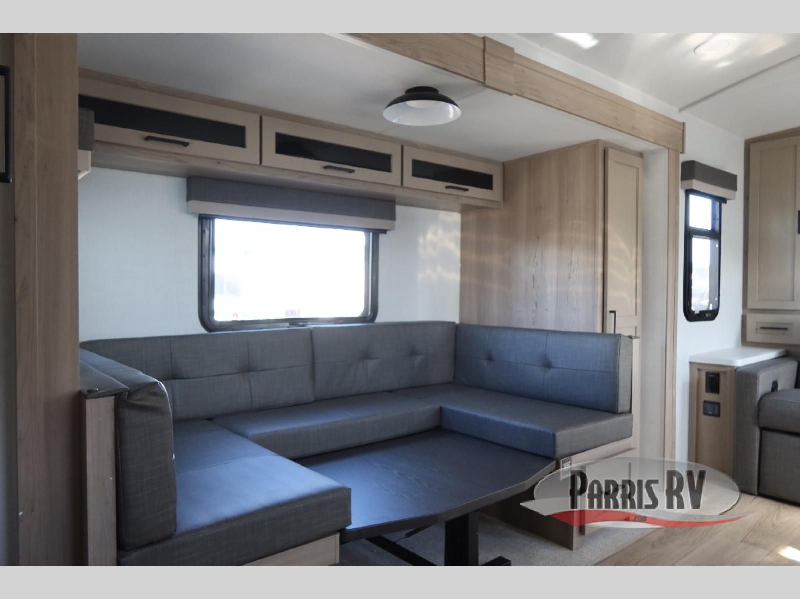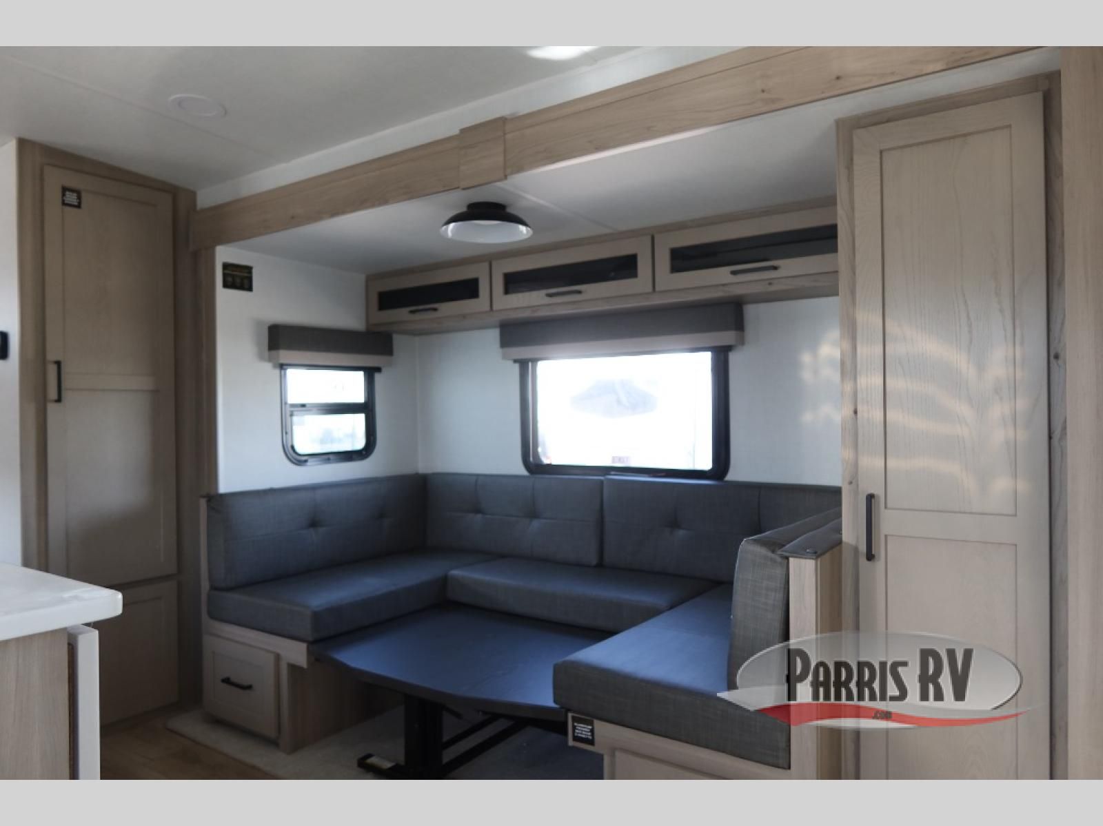 Finally, a lightweight travel trailer with double-size bunks for the kids or your guests! You'll find the versatile Murphy bed up front will be super convenient when you need more space to move around, and the 72" sofa will provide comfy seating space when the bed is put up. This model also includes a U-shaped dinette slide perfect to dine around, play games, and sleep additional guests. A TV in the main living area will allow you to watch your favorite shows in the evenings, or you may just find yourselves outdoors under the 18' power awning with LED lights. And check out the pass-through storage, plus additional exterior storage for your hiking gear!