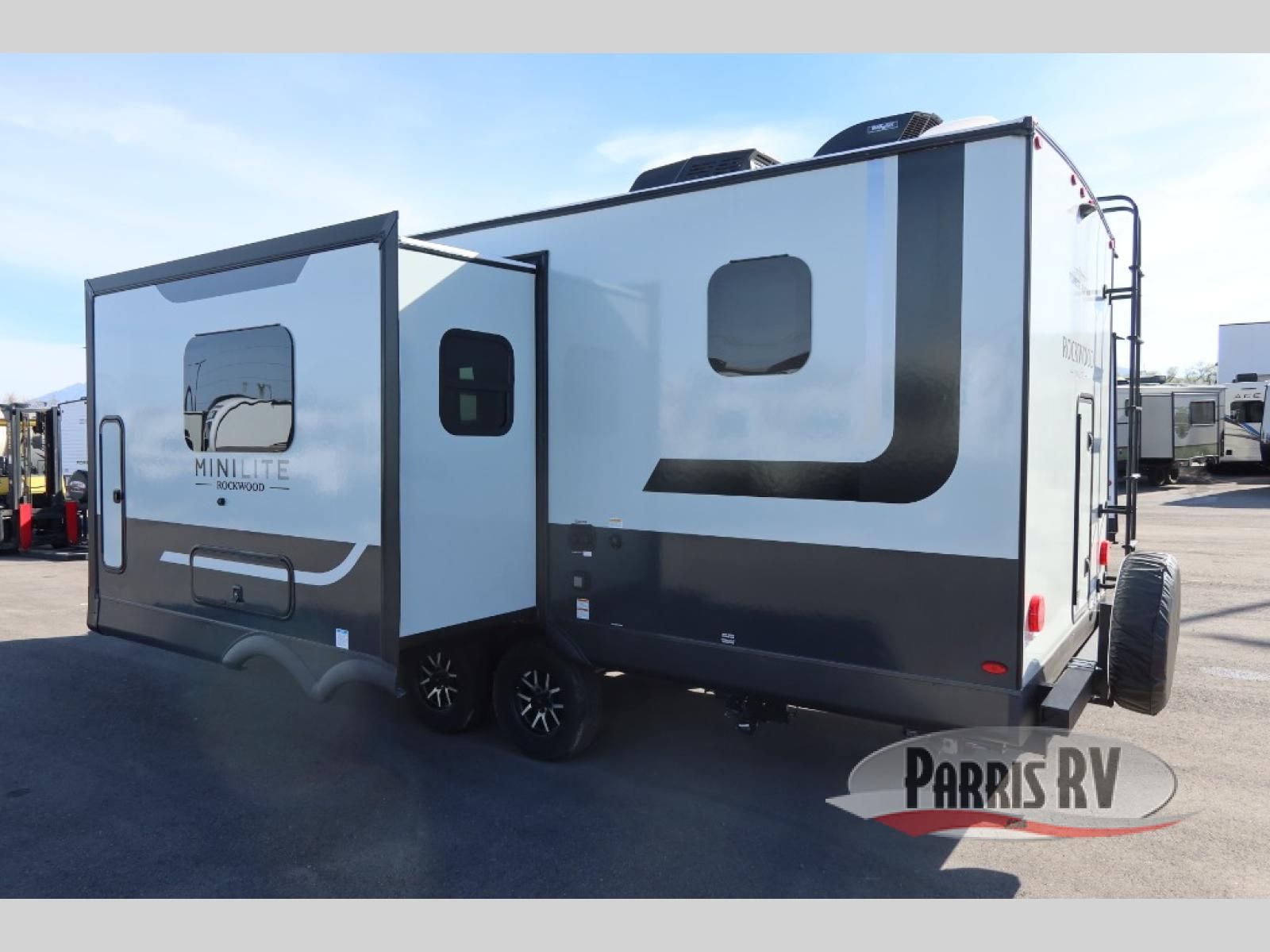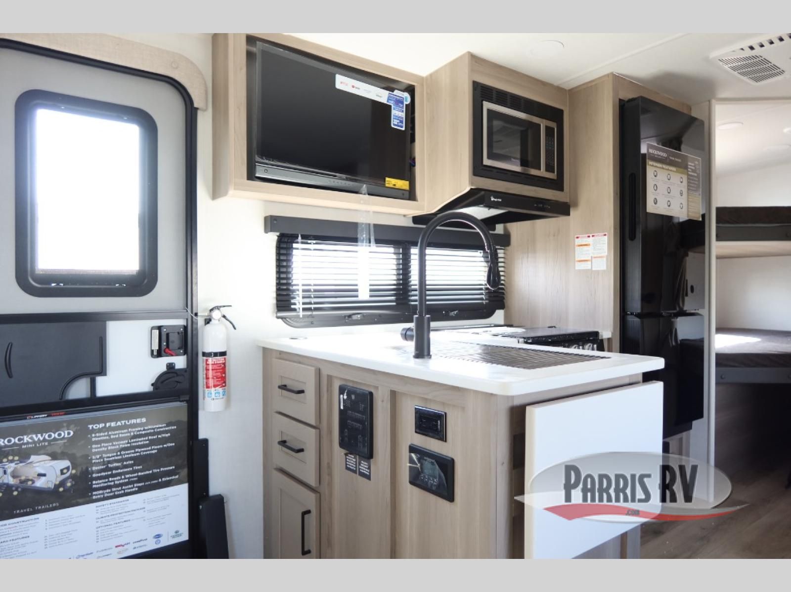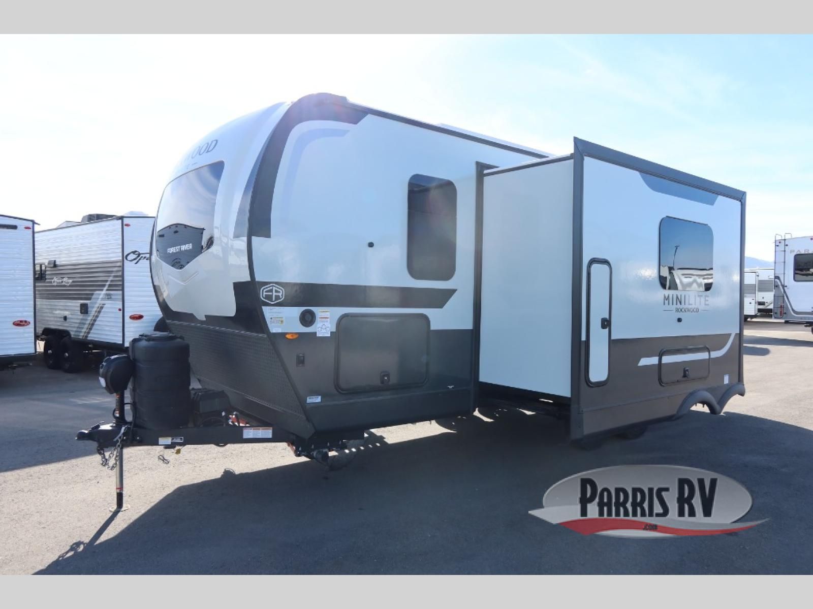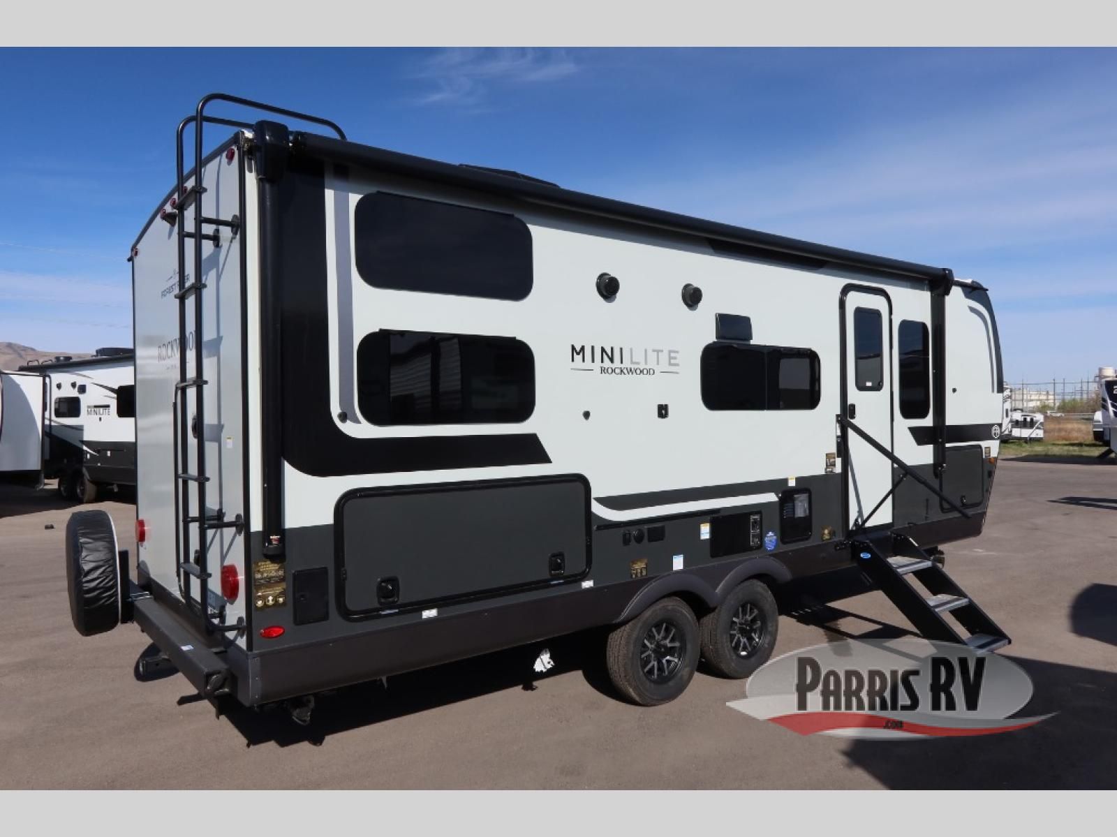 Each Rockwood Mini Lite travel trailer by Forest River is constructed with a fully laminated one-piece walkable roof, sleek frameless windows, and a six-sided full aluminum frame for strength and durability. The 12V thermostatically controlled heated tanks, plus radiant foil in the underbelly will allow you to camp well into the colder months, and the 200W roof solar panel will be perfect for a little off-gridding. Each model includes solid surface kitchen countertops, hidden hinge cabinet doors, roller shades, plus many more interior features. Having an AIR 360+ omnidirectional antenna with WiFi prep on board gives you the option to get some work done if it's needed, and the power tongue jack provides hassle-free set up, so you can enjoy more time relaxing!