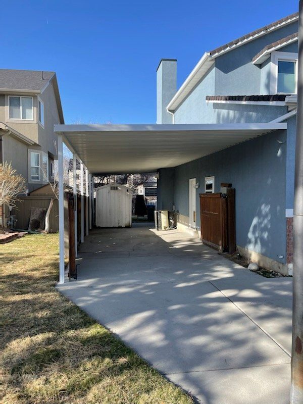 This NEW 10'x20' Carport or Patio Cover kit is high quality and complete. Installation is available with over a decade of professional experience. Keep the snow, rain and sun from destroying your vehicle or Patio space. The framework is thick extruded aluminum that has a lifetime powder coat finish and is engineered to meet or exceed the local snow load and wind requirements. The materials are very nice looking compared to others that you've seen with thin roll form framework. The materials also carry a lifetime warranty from the manufacturer. If this size doesn't quite work for your needs we can make it work. Call or Text 385-315-6950
