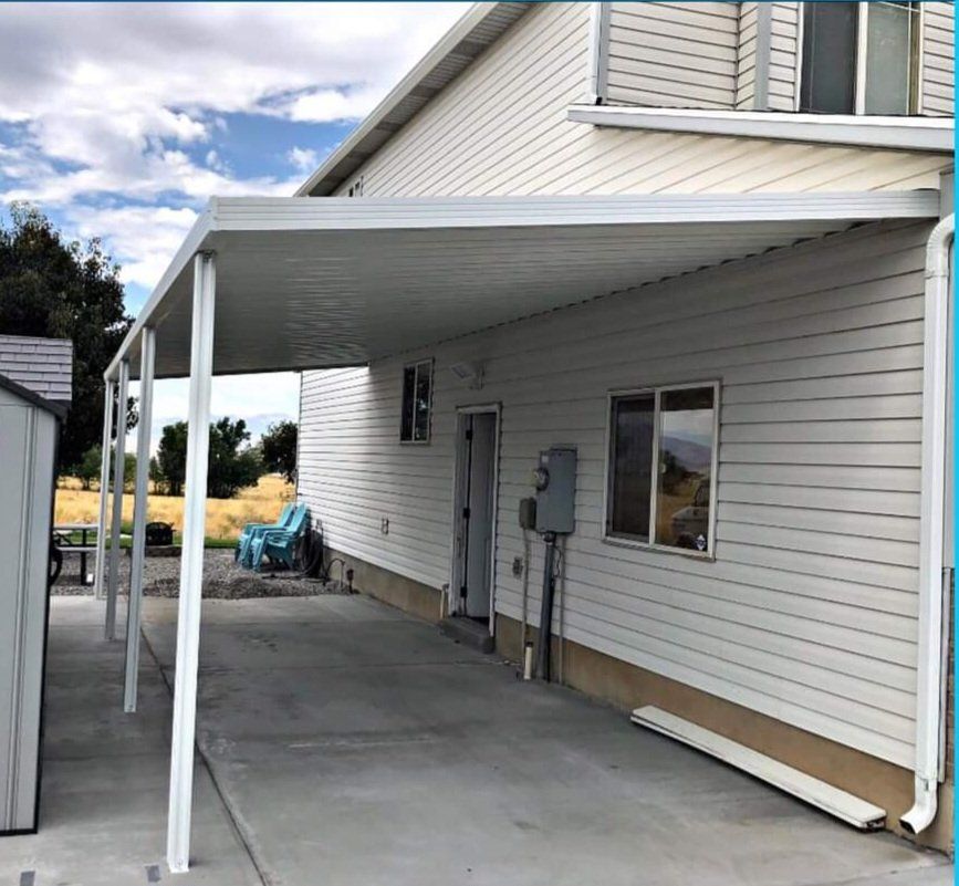 This New 10'x20' Carport or Patio Cover kit is high quality and complete. Installation is available with over a decade of professional experience. Keep the snow, rain, and sun from destroying your vehicle or Patio space. The framework is thick extruded aluminum that has a lifetime powder coat finish and is engineered to meet or exceed the local snow load and wind requirements. The materials are very nice looking compared to others that you've seen with thin roll form framework. The materials also carry a lifetime warranty from the manufacturer. If this size doesn't quite work for your needs, we can make it work. Call or Text 385-315-6950