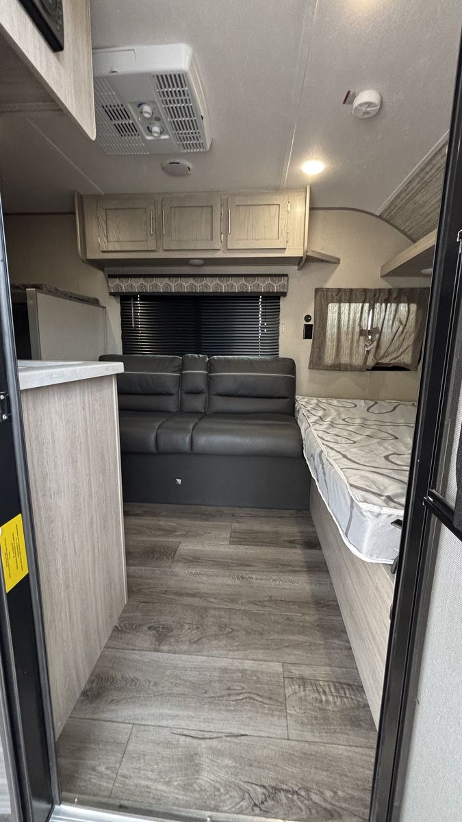 SEE FEATURES & SPECS BELOW: • Title in Hand • Like New Tires • Solar Ready with Outside Hookup • Large pass through storage • Fold out Couch for 2 • All LED Lighting • Power Awning with LED Light Strip • Bluetooth Powered lights and monitoring control system • 2 Large Size Bunk Beds • 6 Gallon Electric/Propane Water Heater • Can Sleep Up to 6 People • 12 Volt Fridge • Microwave & Hood • 13,000 but Air Conditioning in Ceiling • Weighs 3,046 (Dry) 4,386 (GVWR) • Full Length of Trailer is 19' 6 • Box Length of Trailer is 17' • 44 Gal Fresh Water Tank • 30 Gal Grey Water Tank • 30 Gal Black Water Tank