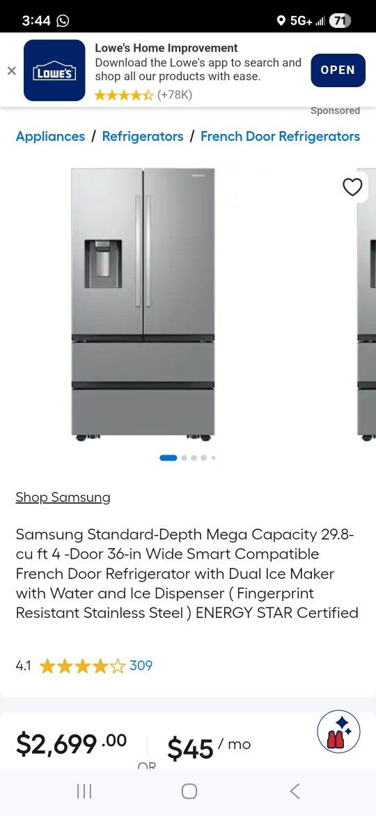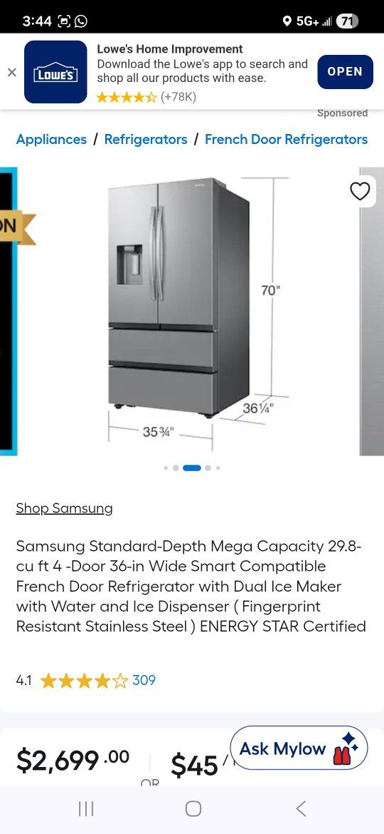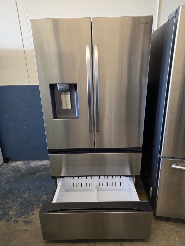 Samsung Standard-Depth Mega Capacity 29.8-cu ft 4 -Door 36-in Wide Smart Compatible French Door Refrigerator with Dual Ice Maker with Water and Ice Dispenser ( Fingerprint Resistant Stainless Steel ) ENERGY STAR Certified, in great working condition and clean, delivery available.