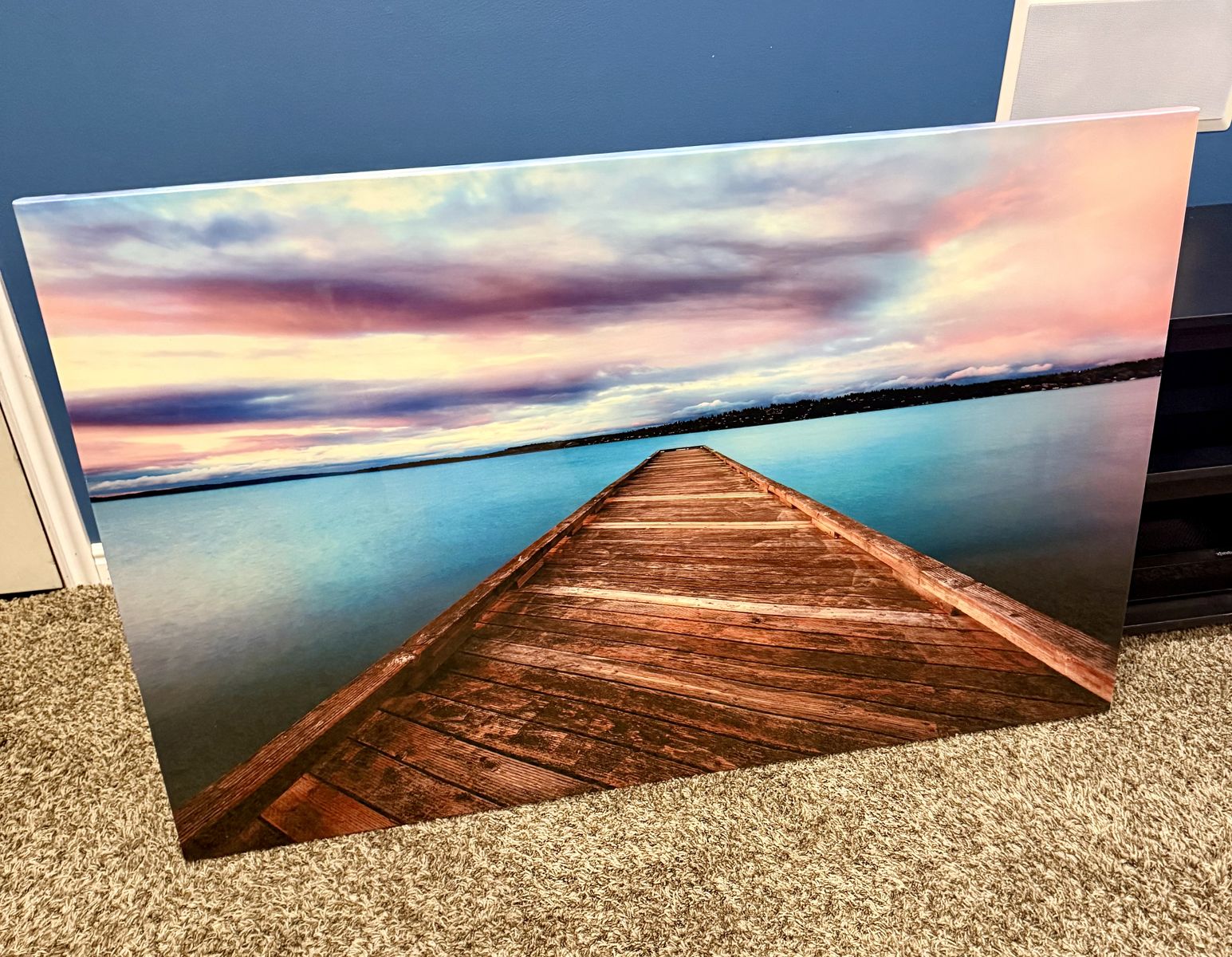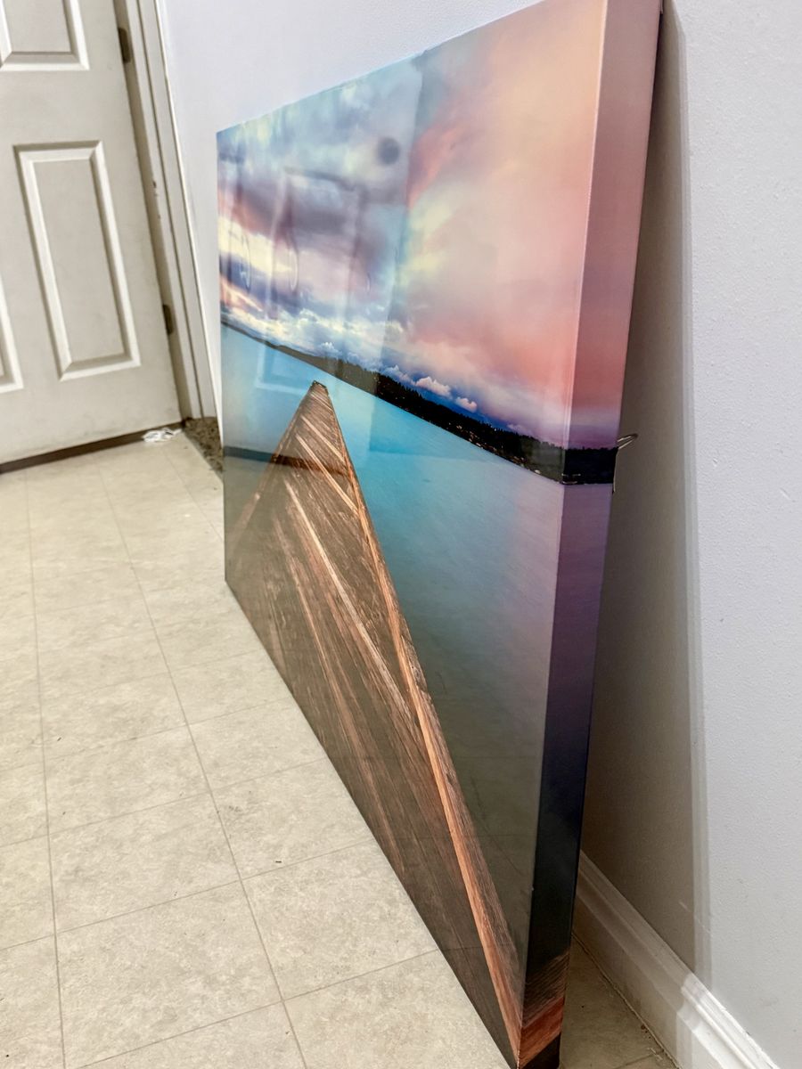 Beautiful dock lake picture. Glossy finish, 30 in x 48 in