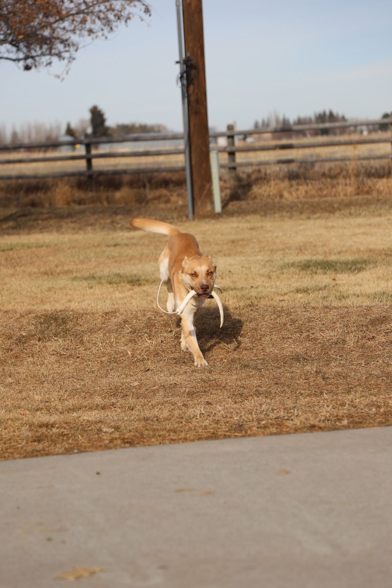 VenmoTraining: Started on antler searches, crate trained, leash work, basic obedience (sit/down/place), continuing education