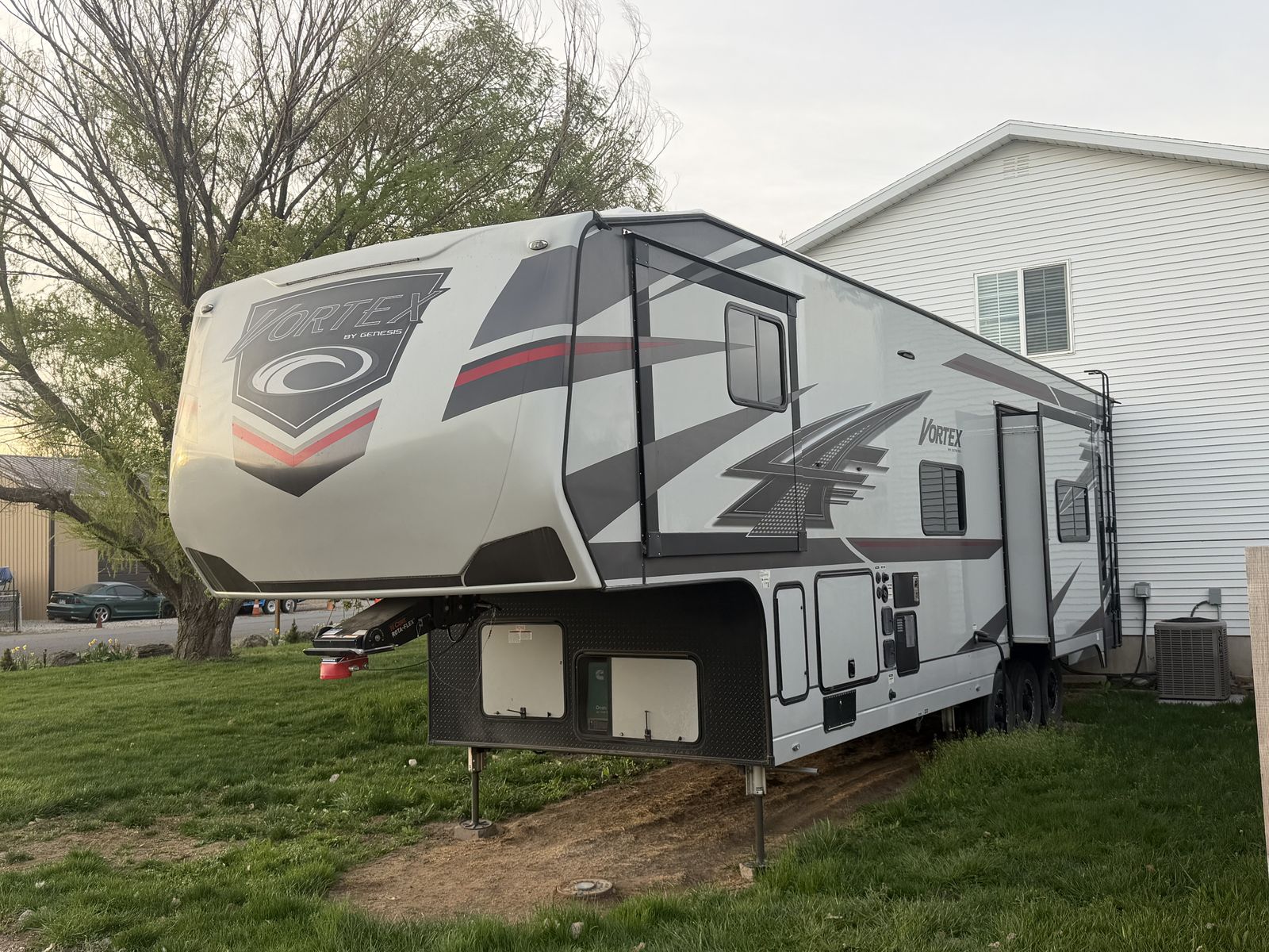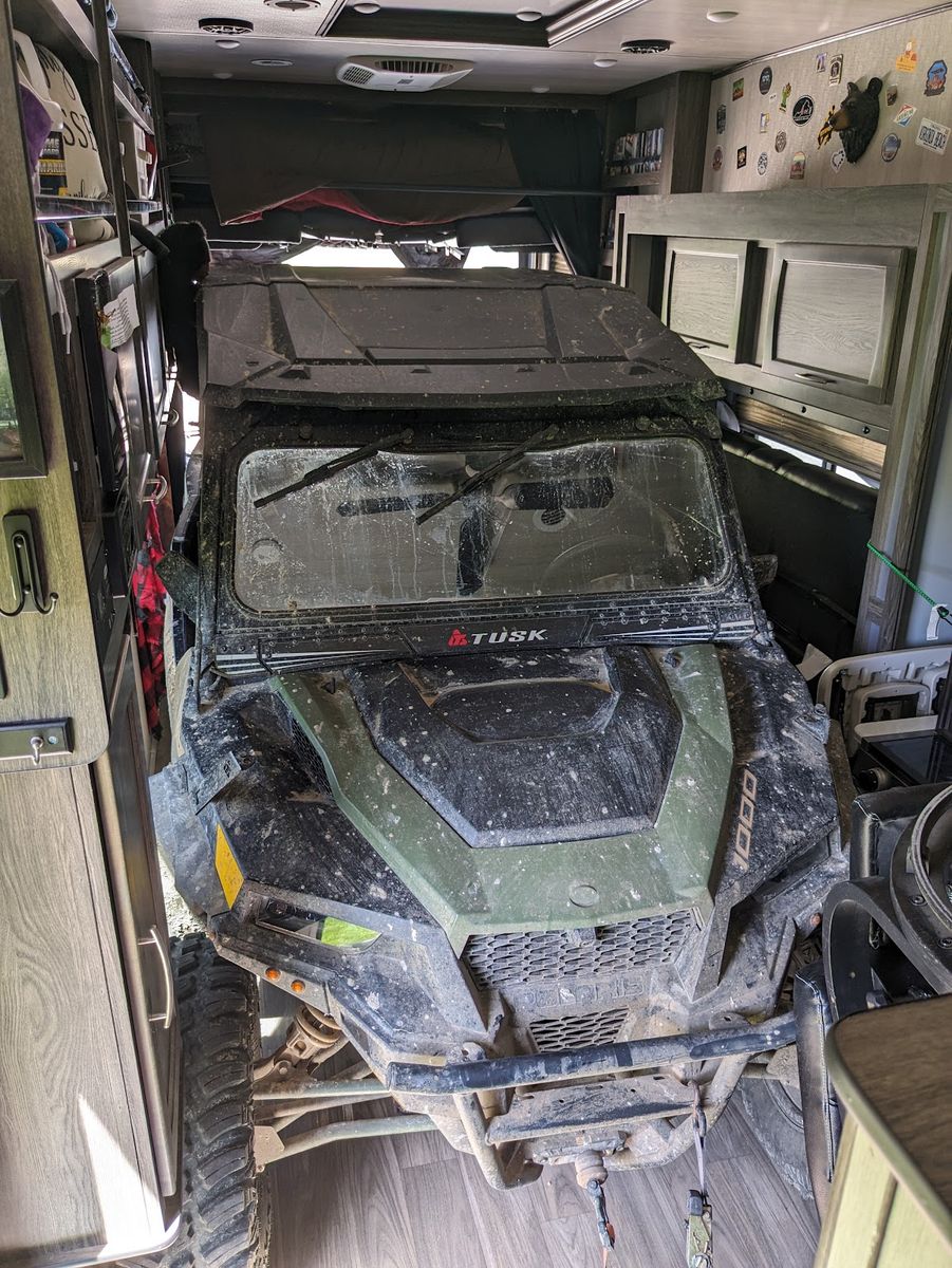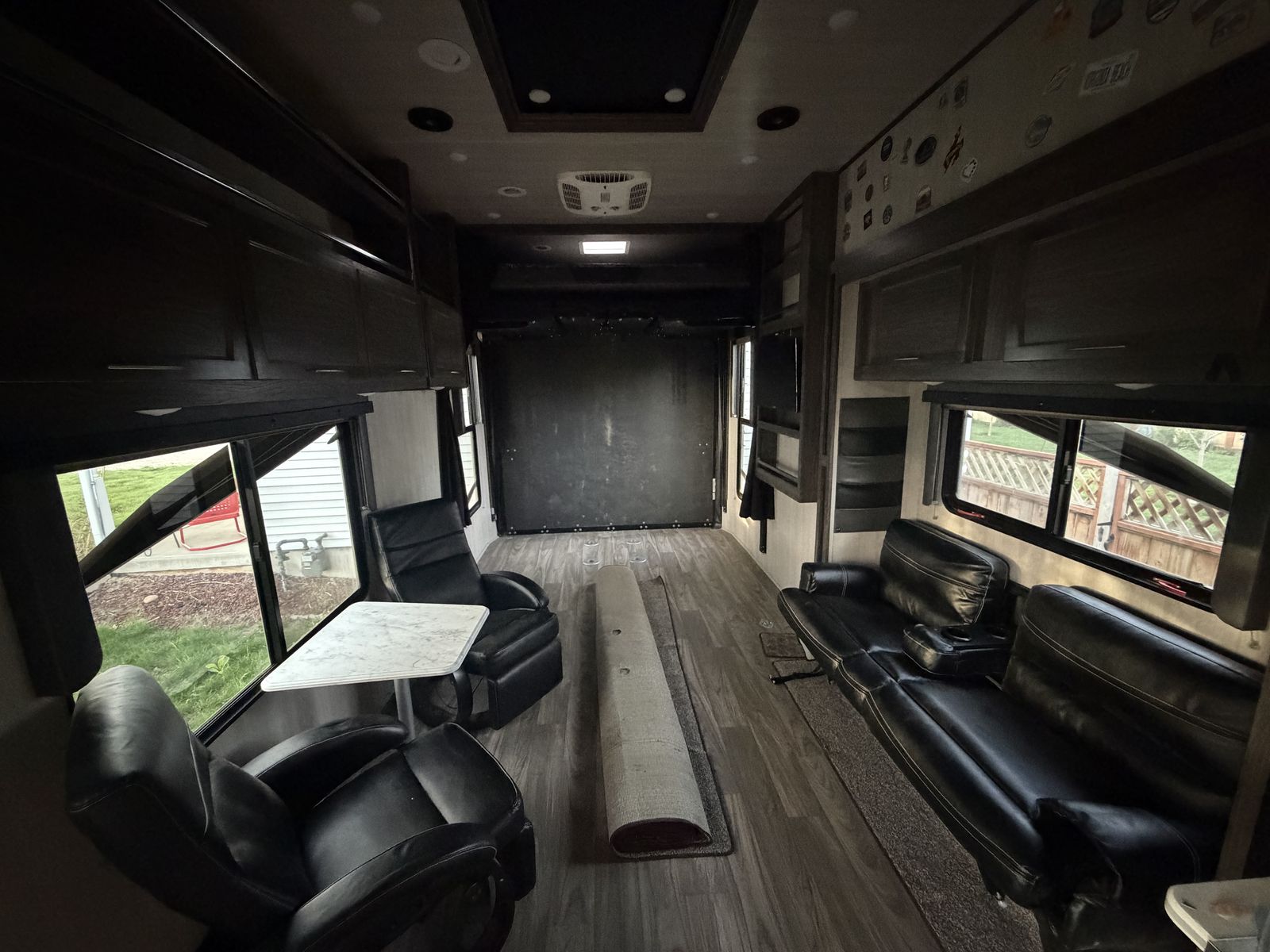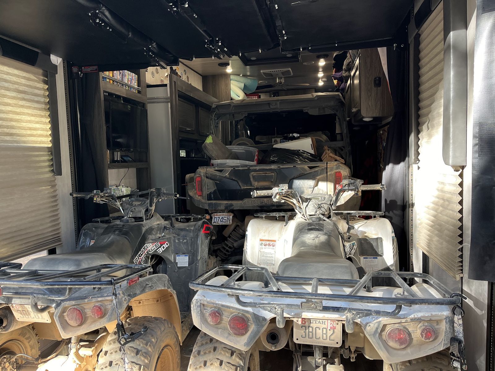 We have loved this toy hauler but do not use it nearly as much as we thought we'd be able. .....We are selling for $63000 but are open to offers. ....This is 39 feet, auto-leveling (hydraulic), 160 gallon fresh water capacity, 50-gallon gray/black tanks, solar, built in inverter, 2 6v batteries, 5500 onan generator, french-door fridge operates on gas or power, holds 40 gallons of gas for toys, GVWR 17,500, can get over 5000 lbs of cargo (see pics of 4 seater side by side with 2 atvs loaded inside), king size bed with slideouts in bedroom, can sleep 8 comfortably (one dropdown, 2 jack knife sofas under that, and an additional jack knife sofa in slide out, drop down open patio,3 A/C units.. $63000, OBO