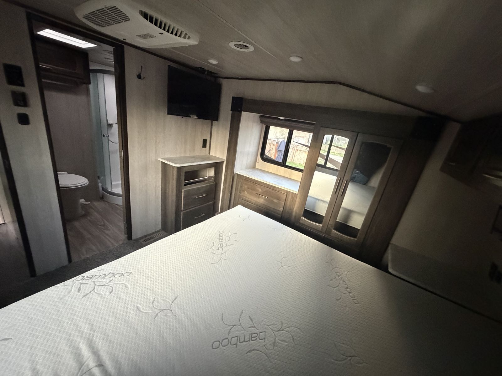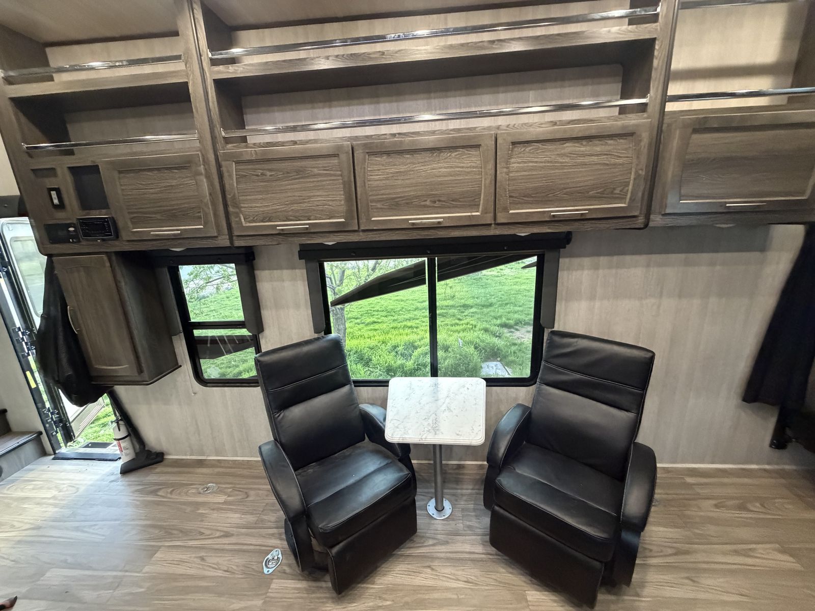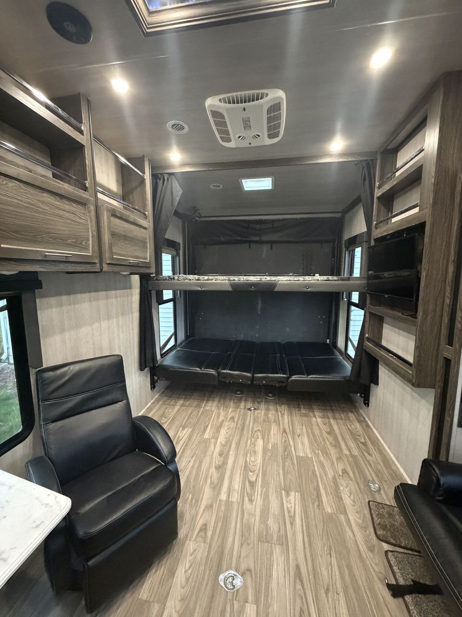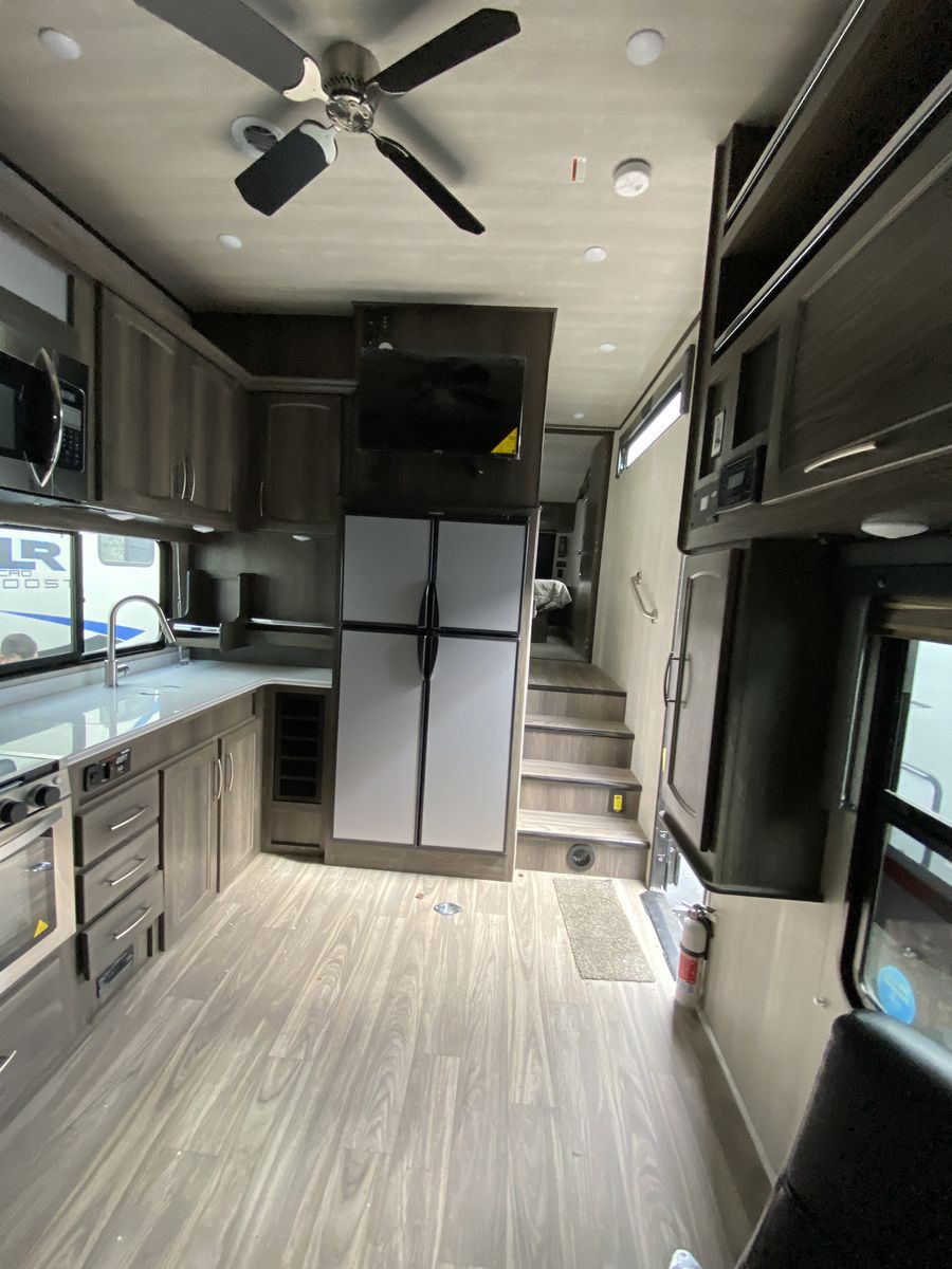 We have loved this toy hauler but do not use it nearly as much as we thought we'd be able. .....We are selling for $63000 but are open to offers. ....This is 39 feet, auto-leveling (hydraulic), 160 gallon fresh water capacity, 50-gallon gray/black tanks, solar, built in inverter, 2 6v batteries, 5500 onan generator, french-door fridge operates on gas or power, holds 40 gallons of gas for toys, GVWR 17,500, can get over 5000 lbs of cargo (see pics of 4 seater side by side with 2 atvs loaded inside), king size bed with slideouts in bedroom, can sleep 8 comfortably (one dropdown, 2 jack knife sofas under that, and an additional jack knife sofa in slide out, drop down open patio,3 A/C units.. $63000, OBO