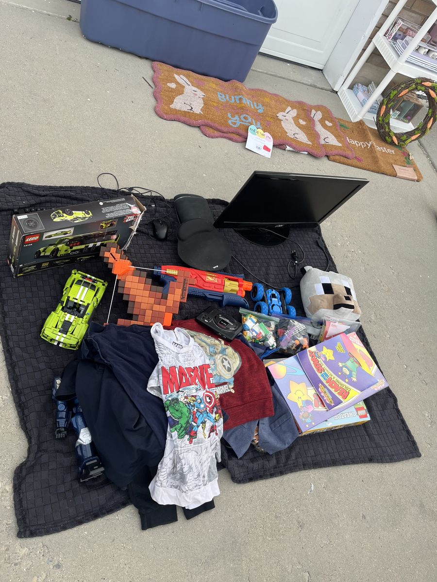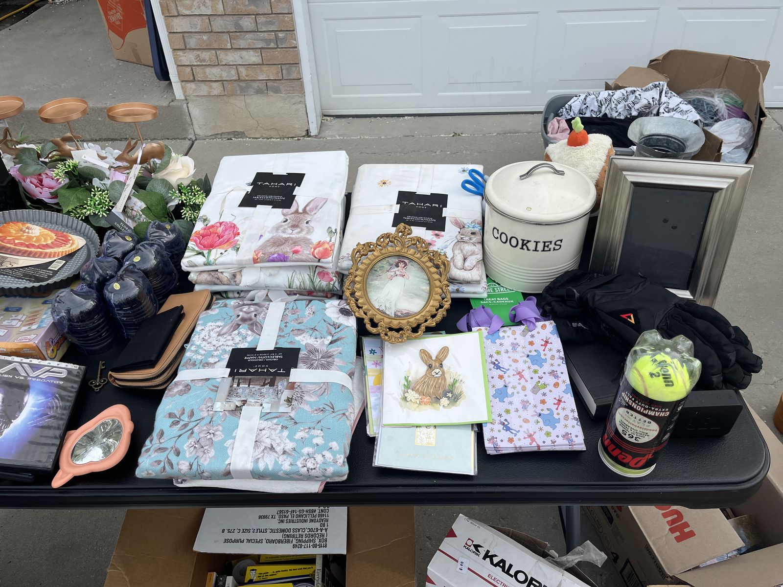 ZelleLots of kids clothes, women’s clothes, Easter stuff, new Easter rugs, and decor, table clothes etc! 8-1 pm today