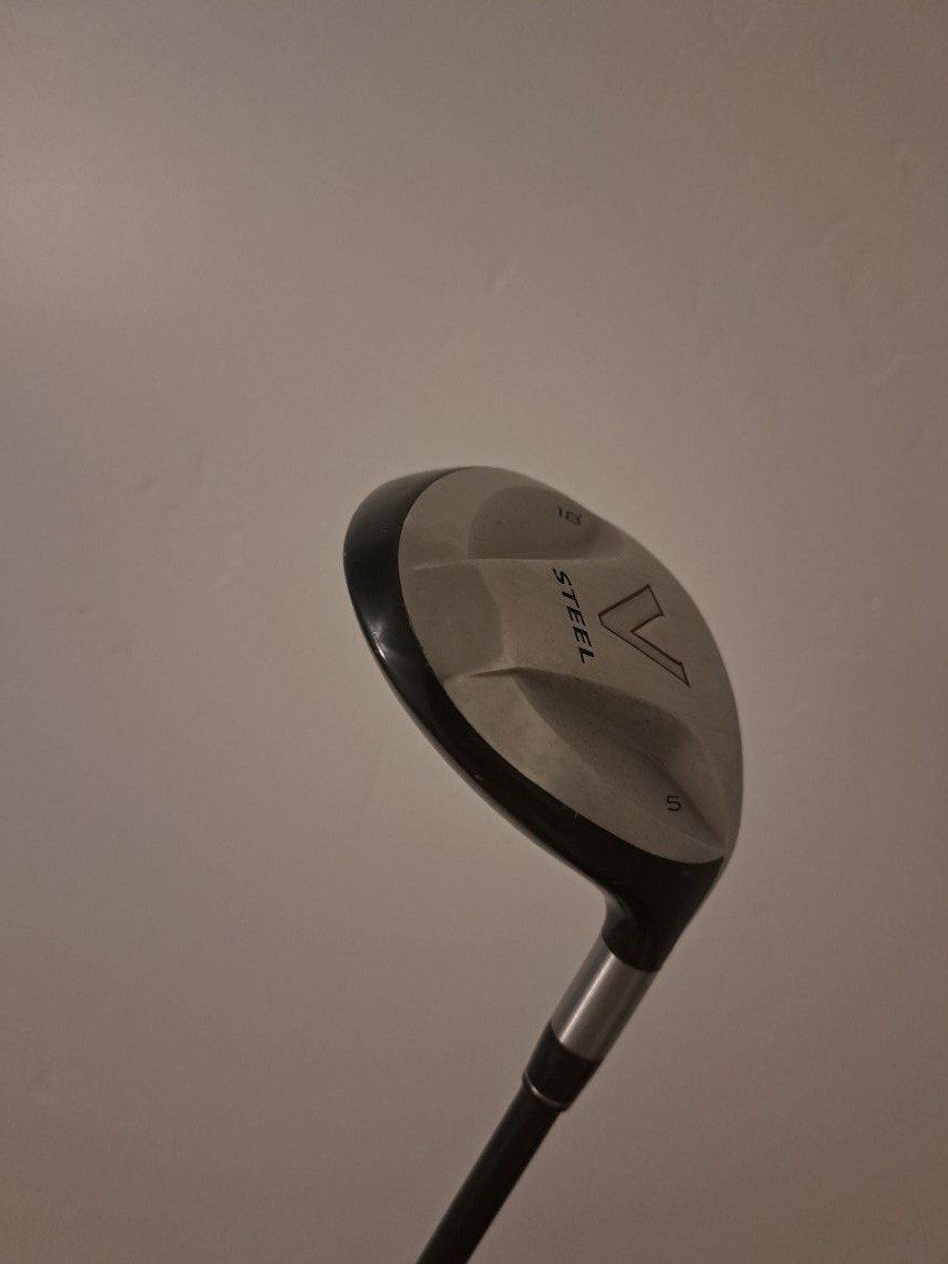 Taylormade V Steel 5 Wood. 18 degrees of loft. Stiff flex graphite shaft. Standard size grip.
