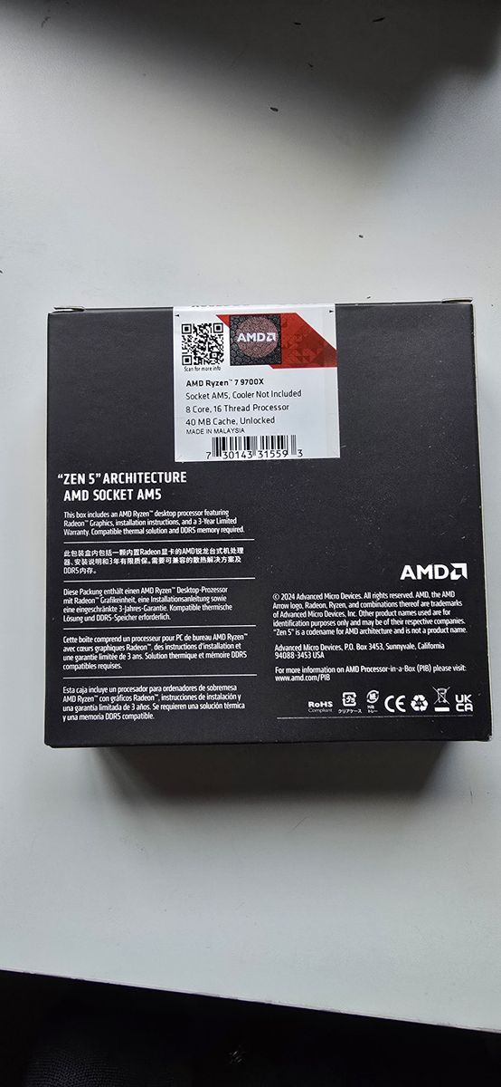 VenmoBrand new, never opened or used AMD Ryzen 7 9700X processor. Still factory sealed in original retail box. CPU only, no CPU cooler included.