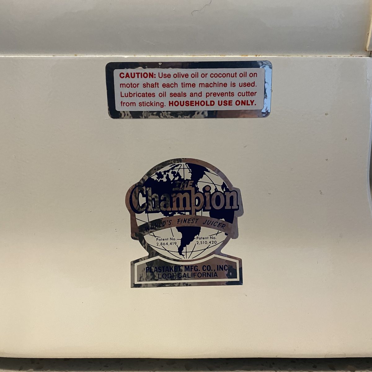 VenmoGently used Champion Juicer, looks and works like new, cord looks new too.