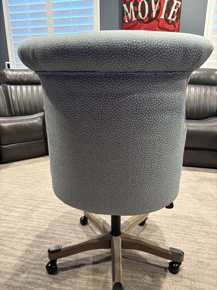 VenmoOffice chair in good condition. Light blue with gray wash wood base. Adjusts up and down. $30 OBO Please call or text 801-518-5844