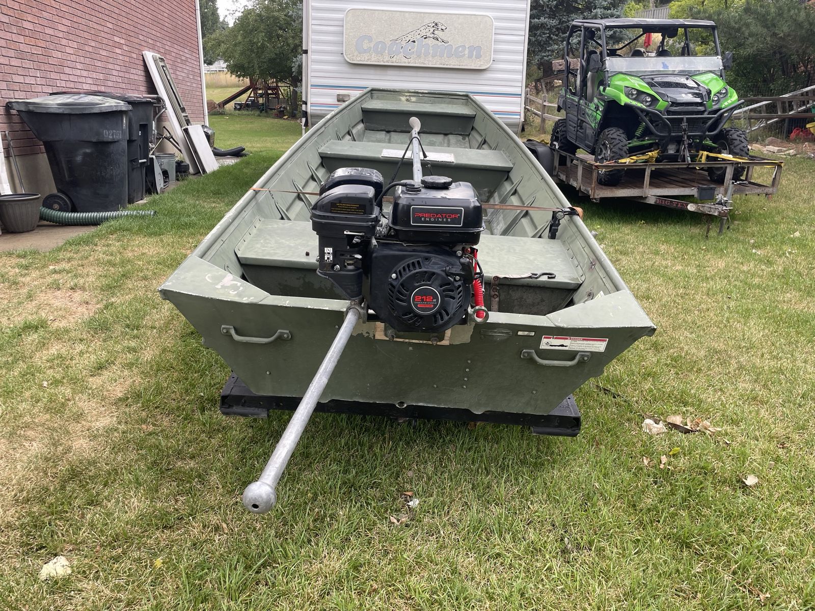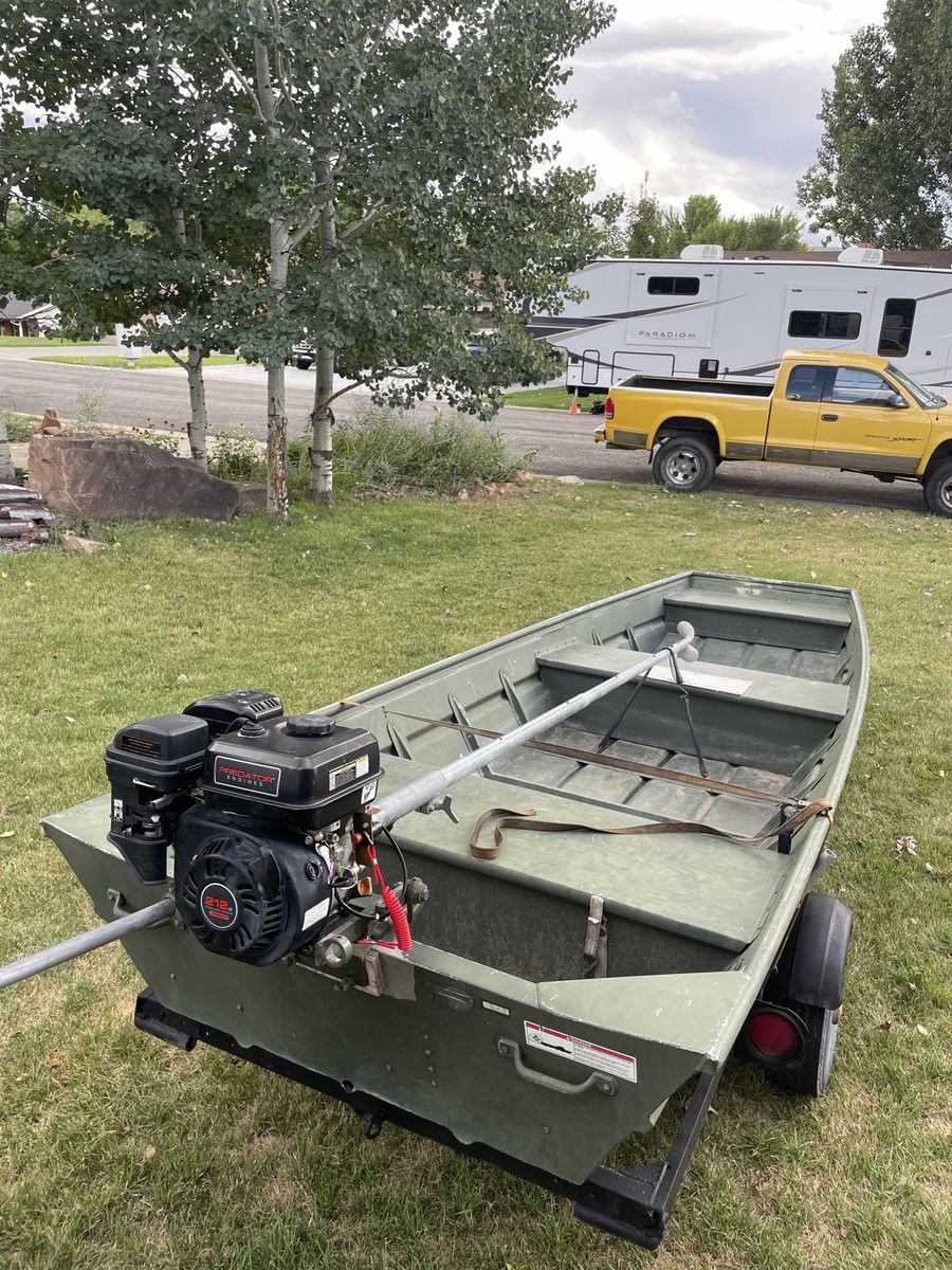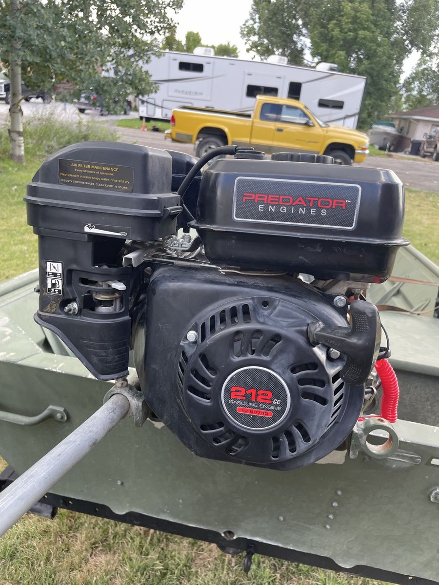 Venmo1436 Alumacraft flat bottom Jon boat with 6.5hp predator motor on swamprunner SPS kit. Trailer included, no leaks.