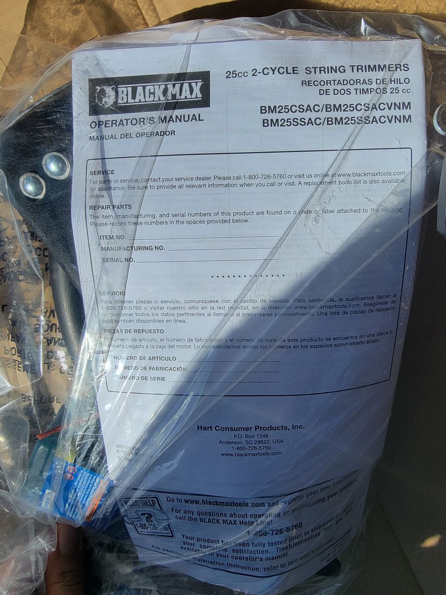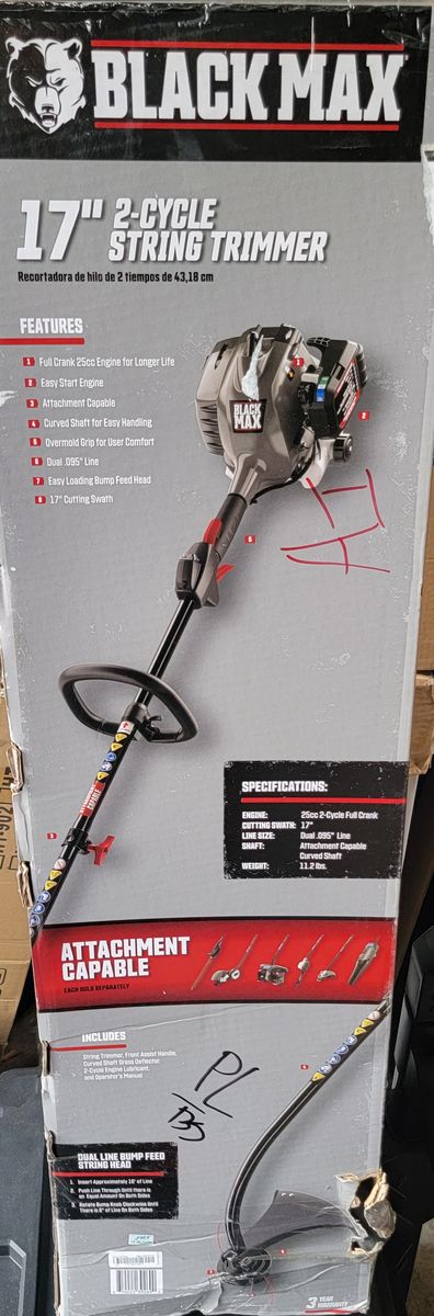 New in Box BlackMax 2-Cycle 25cc Full Crank Straight Shaft Attachment Capable String Trimmer, BM25SSAC.