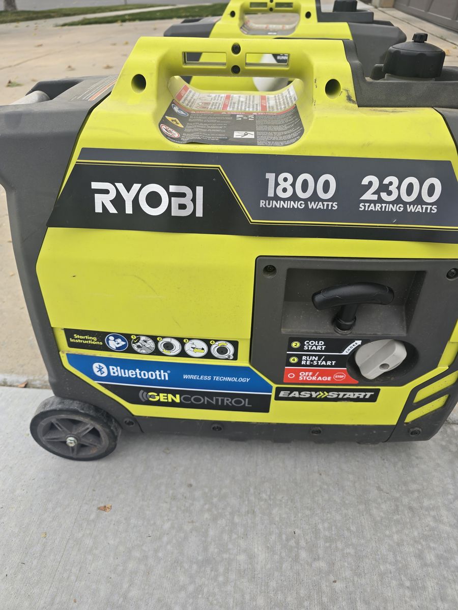 Venmo2 Ryobi 1800/2300 generators with very low hours. Both run great with new carberators. Bluetooth connection to see gas level & turn off remotely.