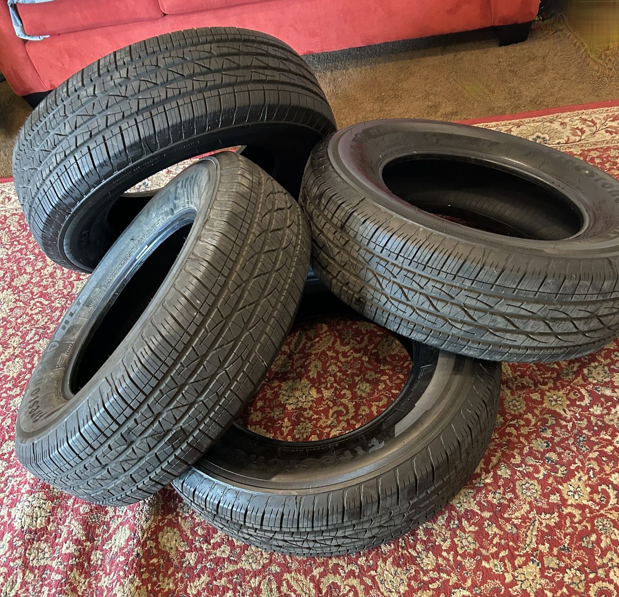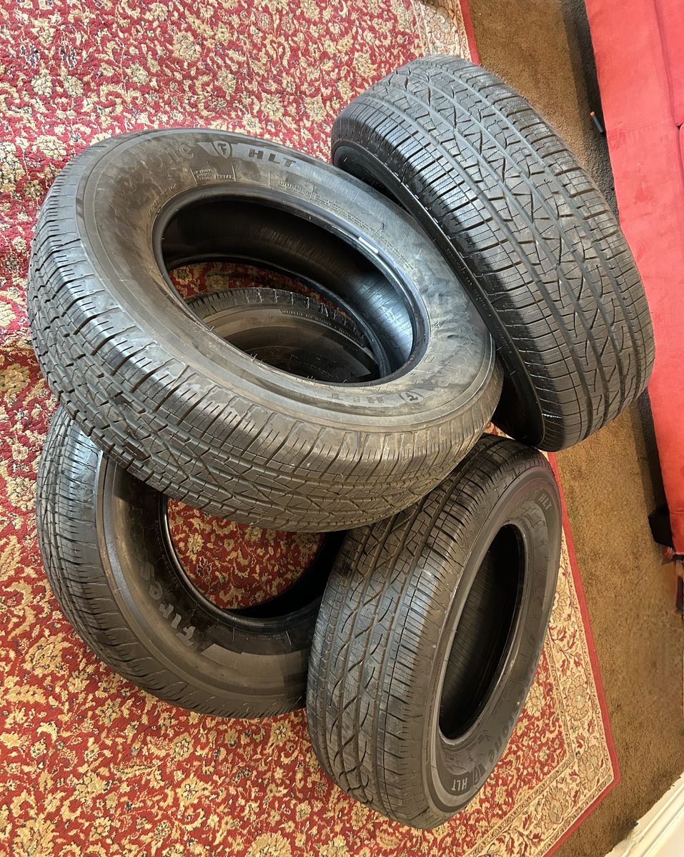 IF YOU ARE LOOKING AT THIS AD IT IS AVAILABLE! NEW TOYOTA WHEELS 17” (6x139.7mm) AND TIRES P245/70R ALL WEATHER TERIAN FIRESTONE HLT. THIS SET OF WHEELS AND TIRES FIT MOST TOYOTAS AS WELL AS SOME OTHER FORD VEHICLES. CENTER CAPS AND LUG NUTS ARE INCLUDED. ONLY $495 CASH FOR EVERYTHING! PLEASE REACH OUT WITH ANY QUESTIONS. THANKS