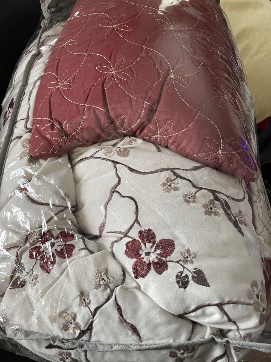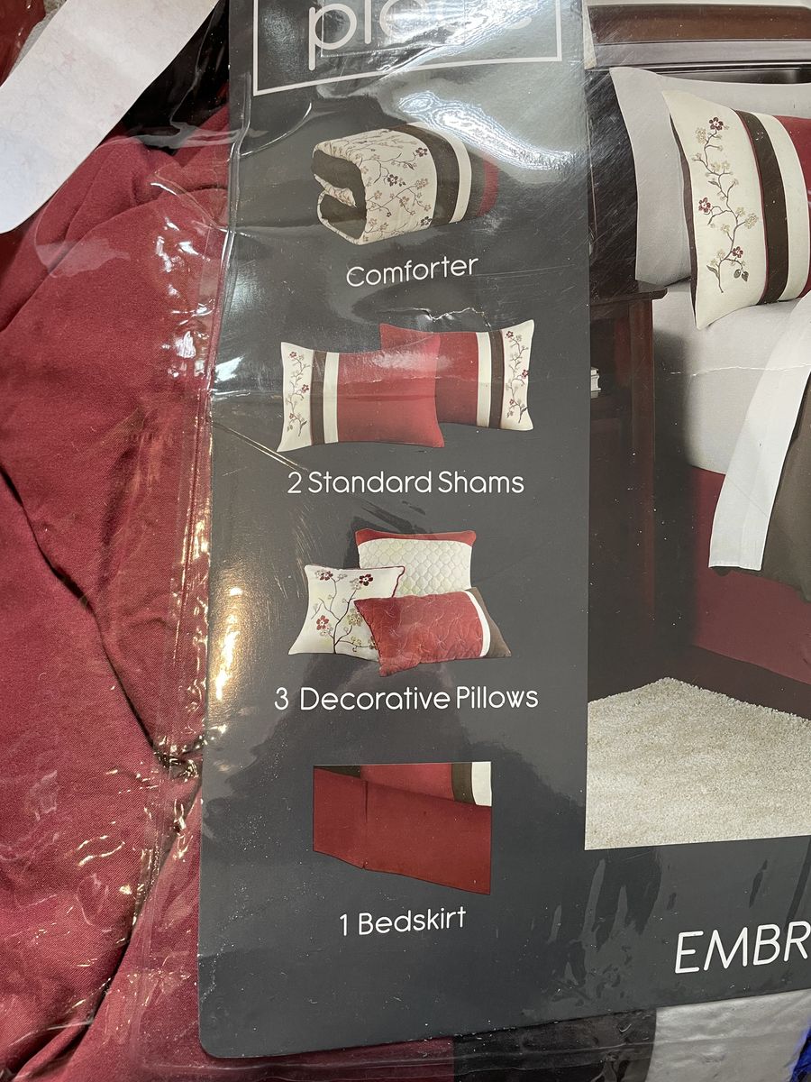 Venmo7 piece comforter set. Brand new. Never removed from bag. Comes with comforter, 2 standard shams, 3 decorative pillows, and 1 bedskirt. It’s maroon. Pickup in Murray