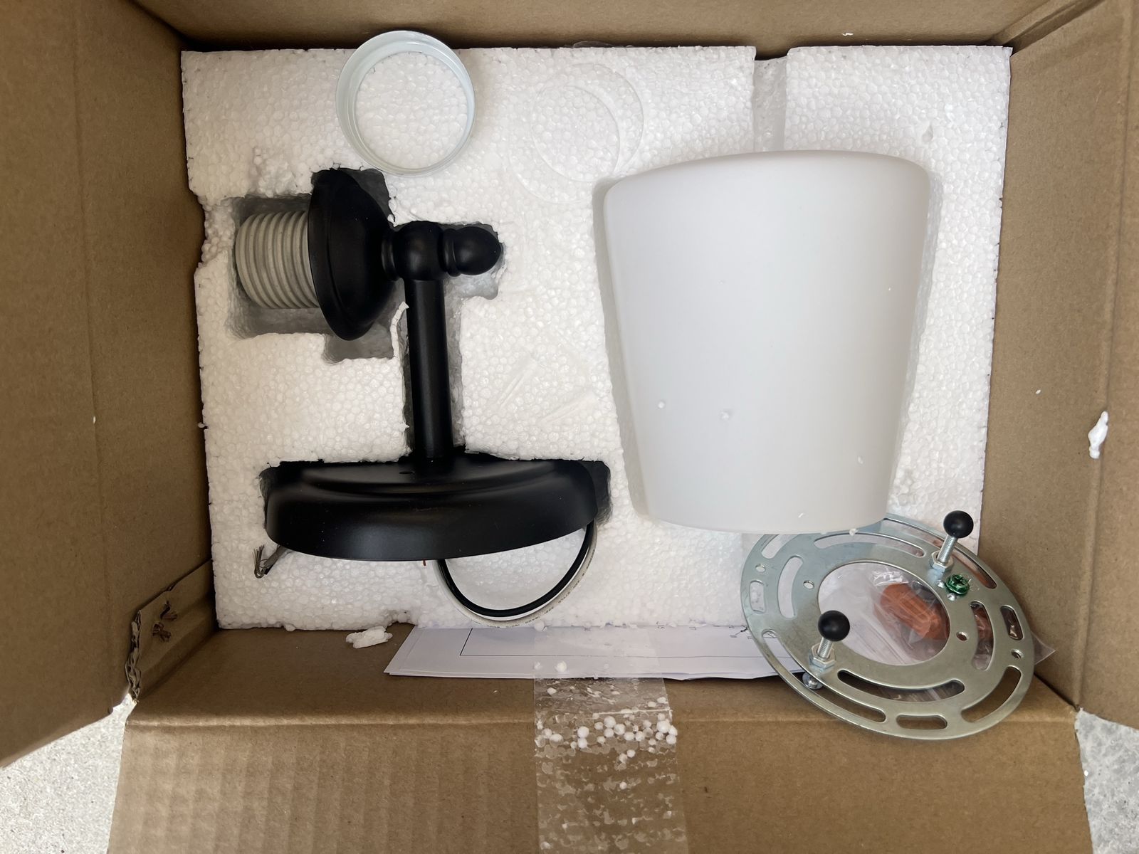 Compatible with most standard wall dimmers - see instruction manual for more details Opal glass shade for soft, diffuse light Use (1) 60W incandescent bulb, or LED equivalent, with this fixture (bulb not included) Extends 6.5 in. from the wall Can be mounted horizontally with the shade facing up or down Easy-to-follow installation instructions included Mounting and wiring hardware provided in the box Hardwire to an in-wall 120V power source Rated for damp indoor areas Meets UL requirements rated for safety