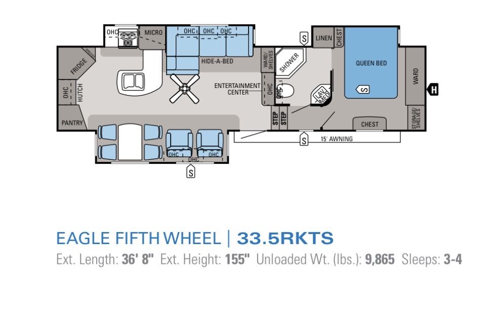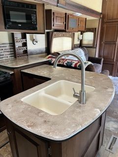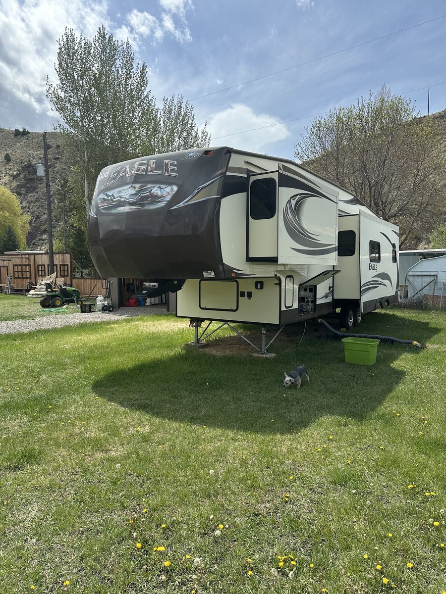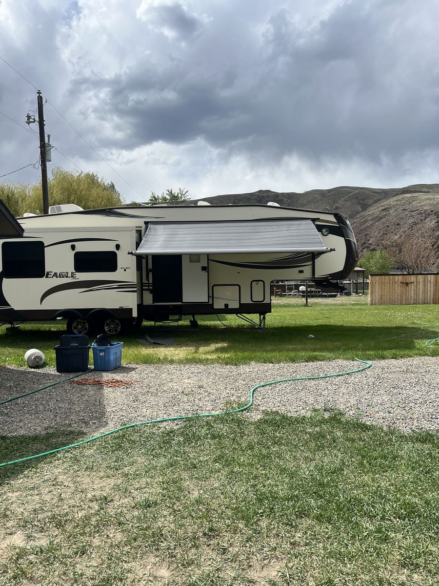 36 ft fifth wheel camper, lots of space and storage, sleep number queen bed, large pantry, large closet and roomy bathroom. Couch folds out to bed. Great condition. Very few road miles. Has been mainly parked on our property. We don't use it as much as we would like. Our loss is your gain.