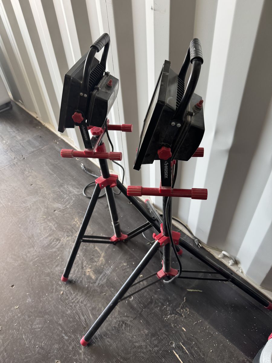These are great work lights. You can take off the base so they are low to the ground and compact or leave them on the base and have the height. The legs slide up for storage. Pick up in Tremonton.
