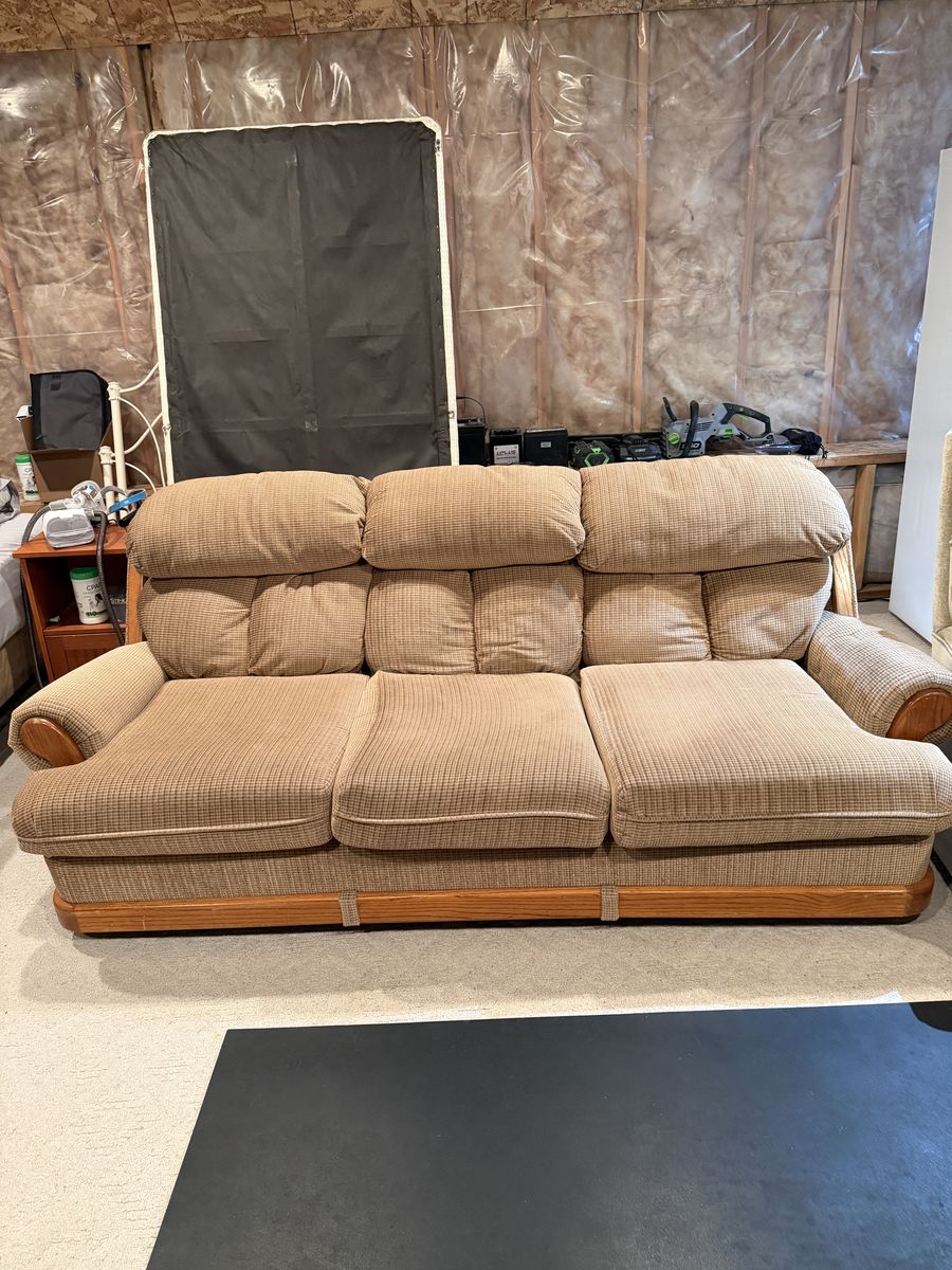 VenmoCouch in decent condition from a non-smoking home. No tears or holes in the fabric, the couch is comfortable. Couch is 81" long and 34" deep.