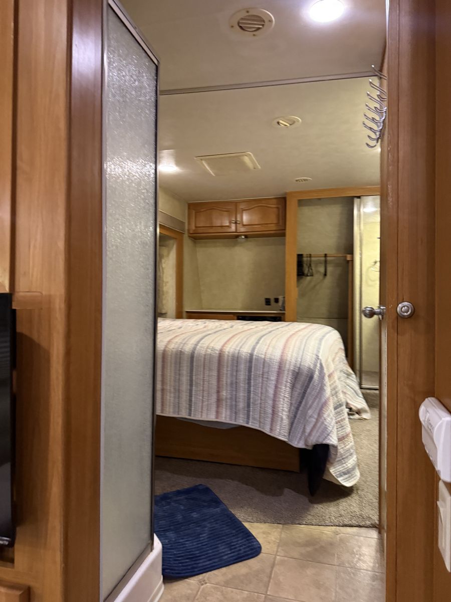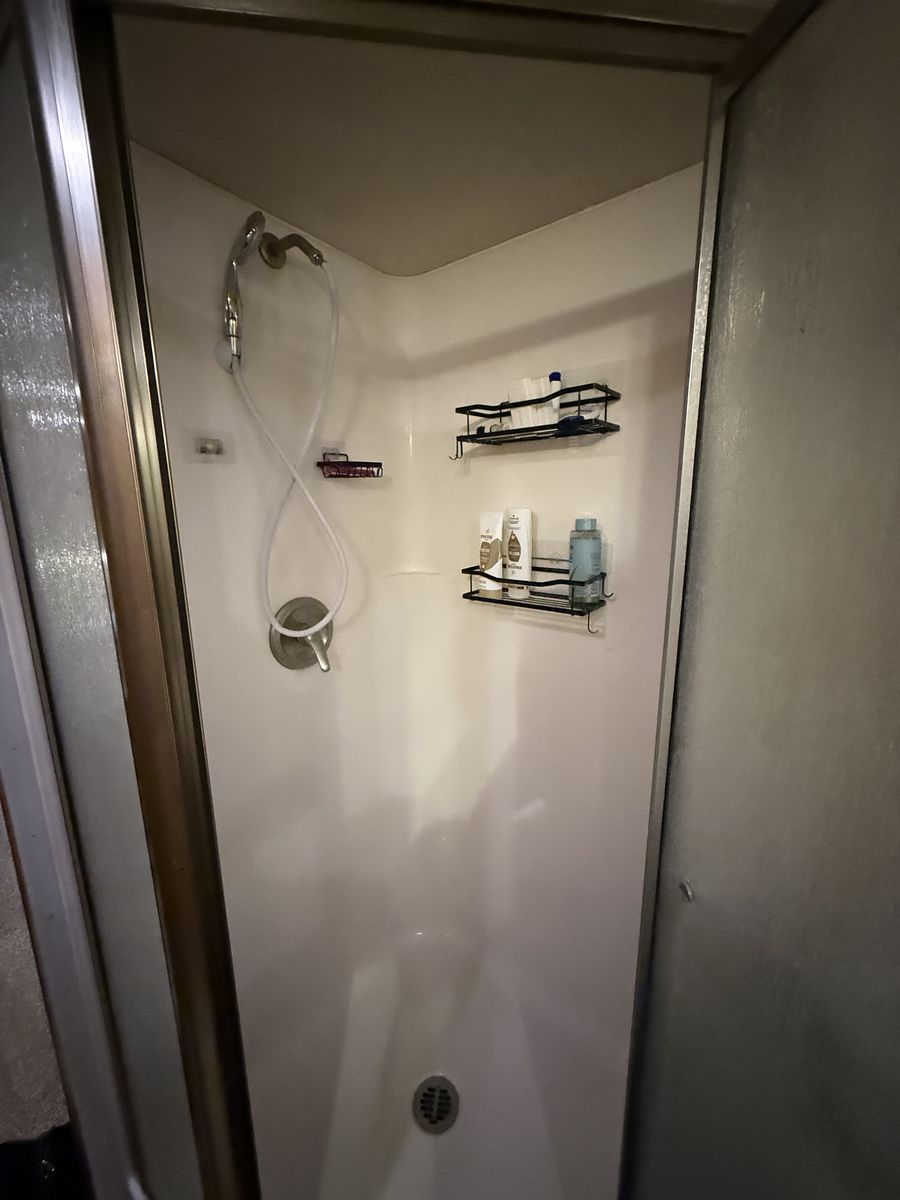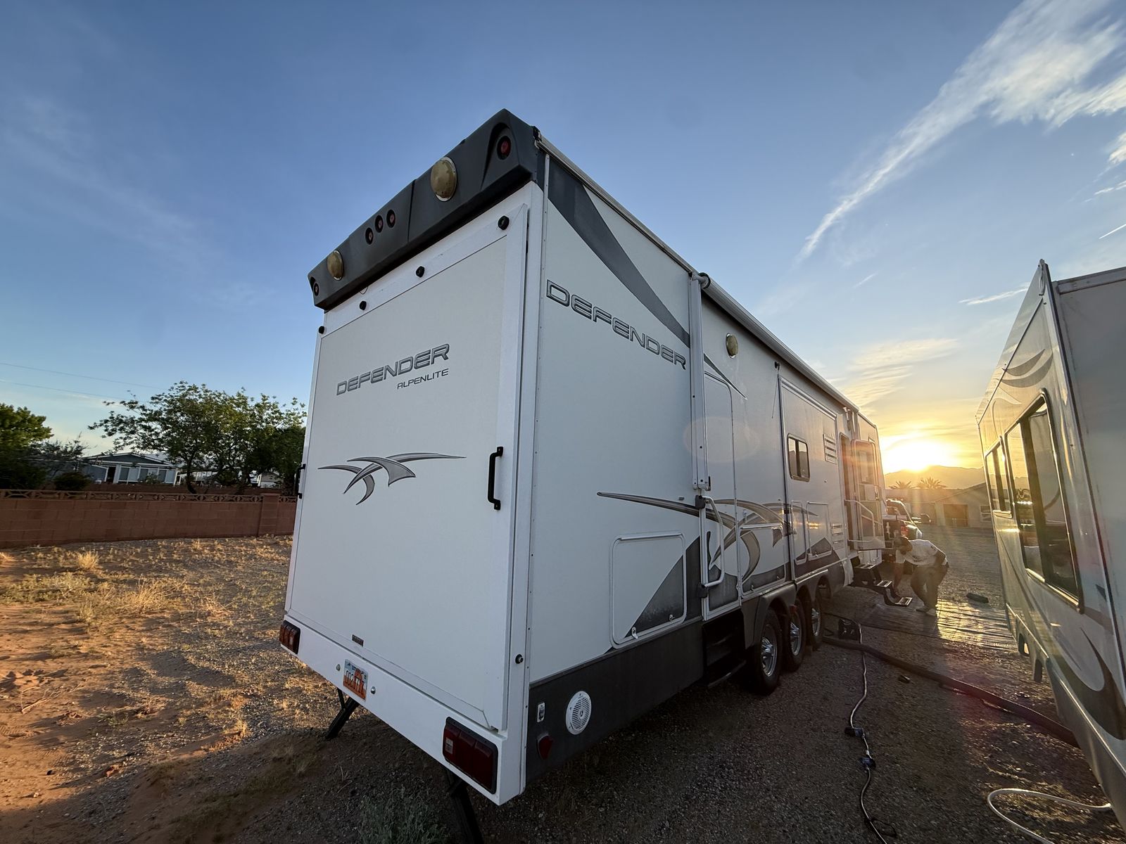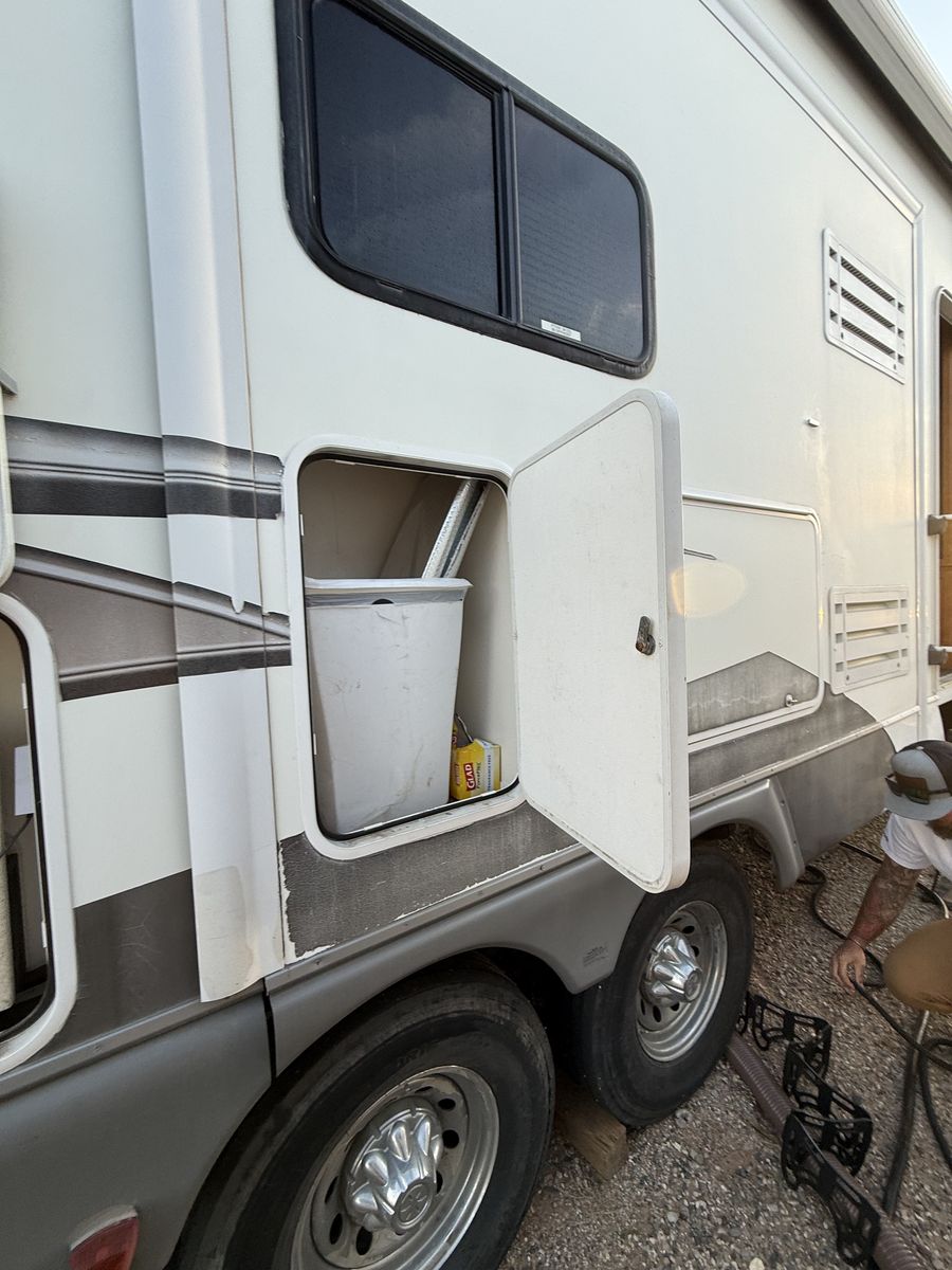 -Dry weight: 13,629 LBS/GVWR: 18,000 -air ride suspension -just did a full tune up on the onboard generator (at Birdies in Spanish fork). Has low hours @208. -onboard fuel tank -two 7 gallon propane tanks with a mobile propane reader -3 batteries -All new tires last summer -new motors for both front jacks -electric rear jacks -kitchen garbage access from outside -central vacuum system -outdoor entertainment center -3 slide outs -two full sized beds in the rear -two electric heaters (110) -including Anderson jack blocks -including some supplies in the trailer -mattress topper on main bed -it does have solar panels but they aren’t working and we’re not sure why. -replaced most of the interior light bulbs this winter. -we’ve never had water leaking issues -Has never had dogs in it -cold weather package/insulation under