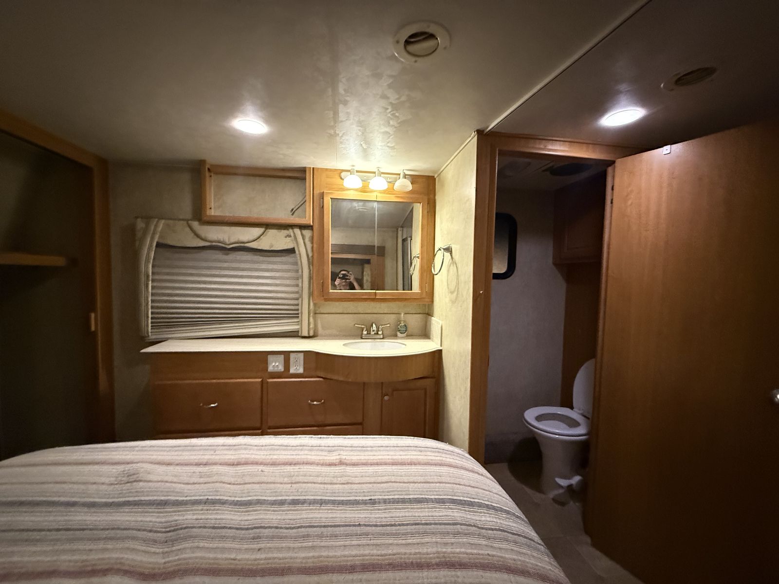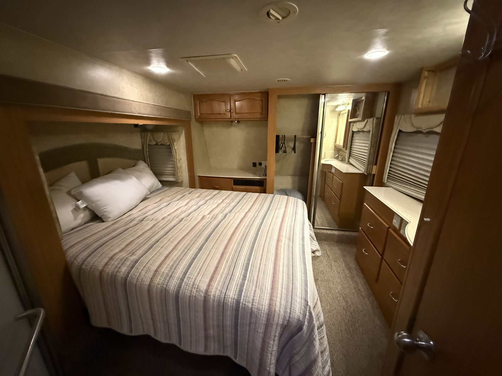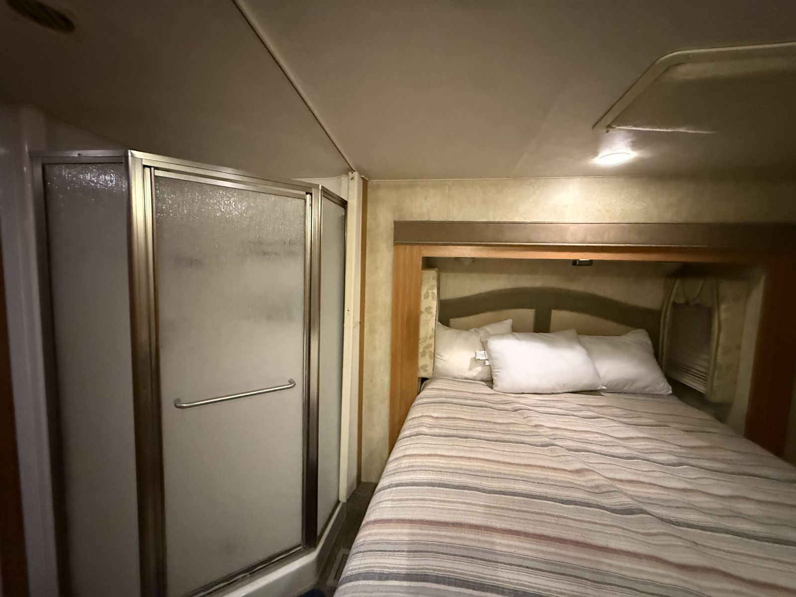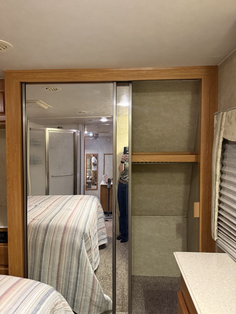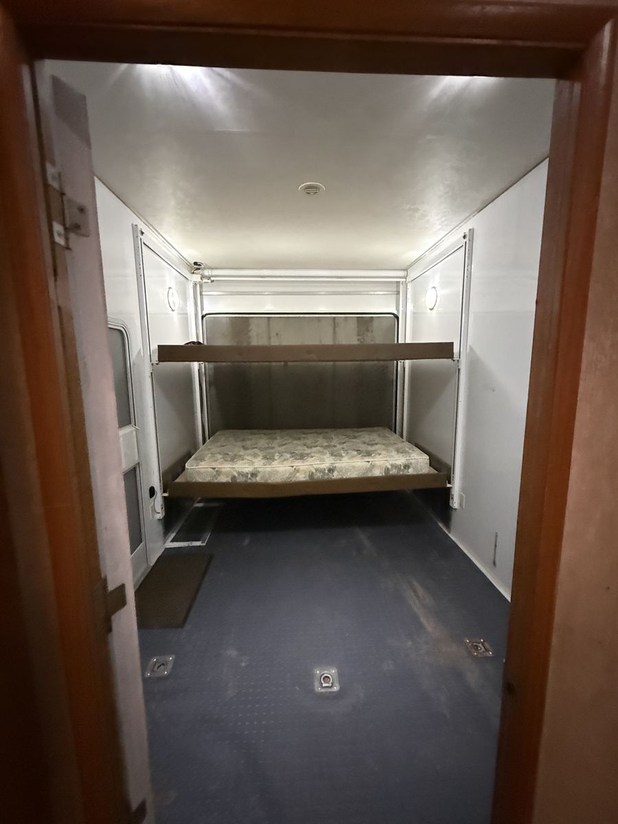 Nice trailer, we are just downsizing. Garage is 91” x 145” and up to 101” tall if you remove the bunks, or 76” to the bottom of the beds.