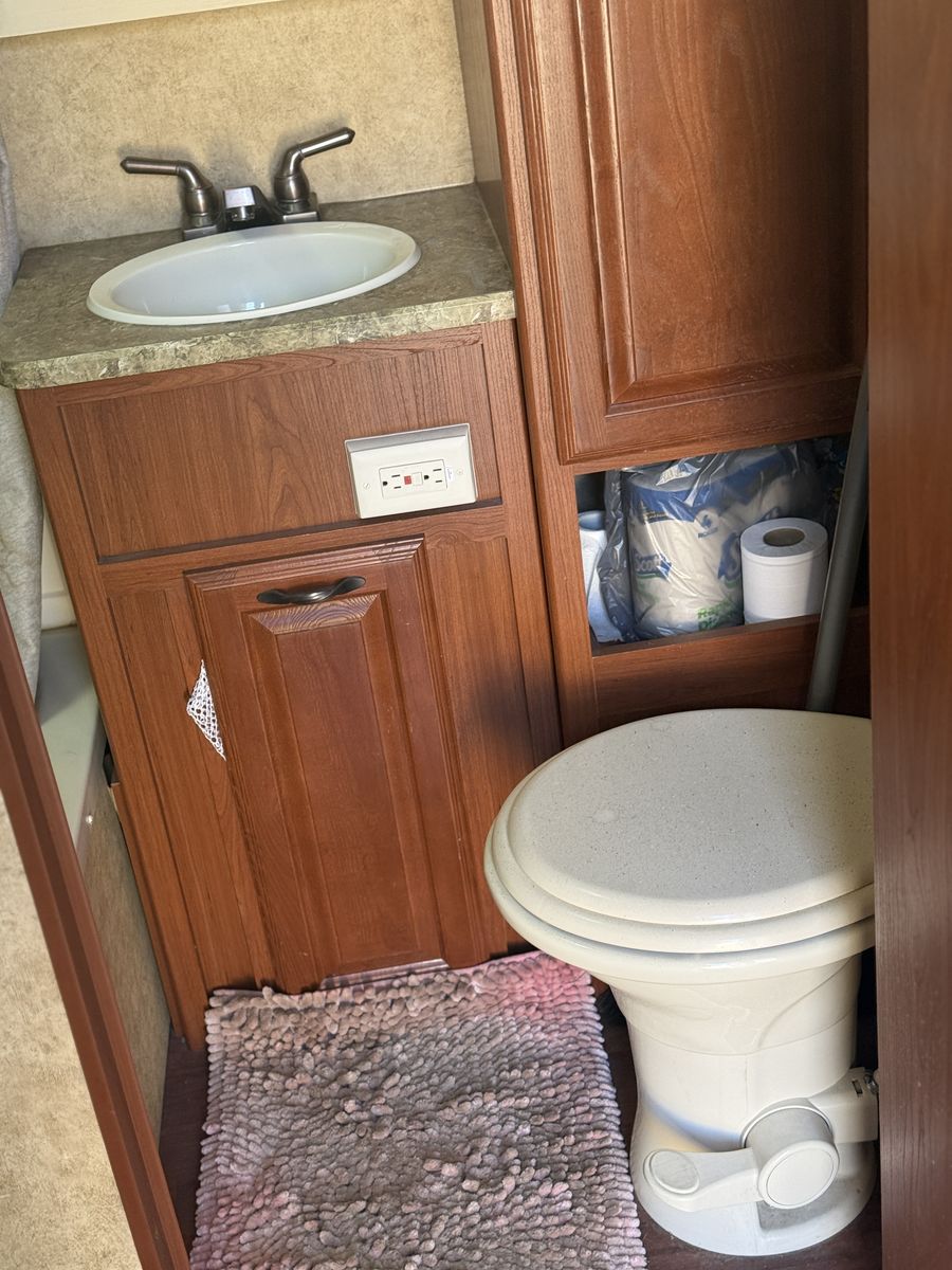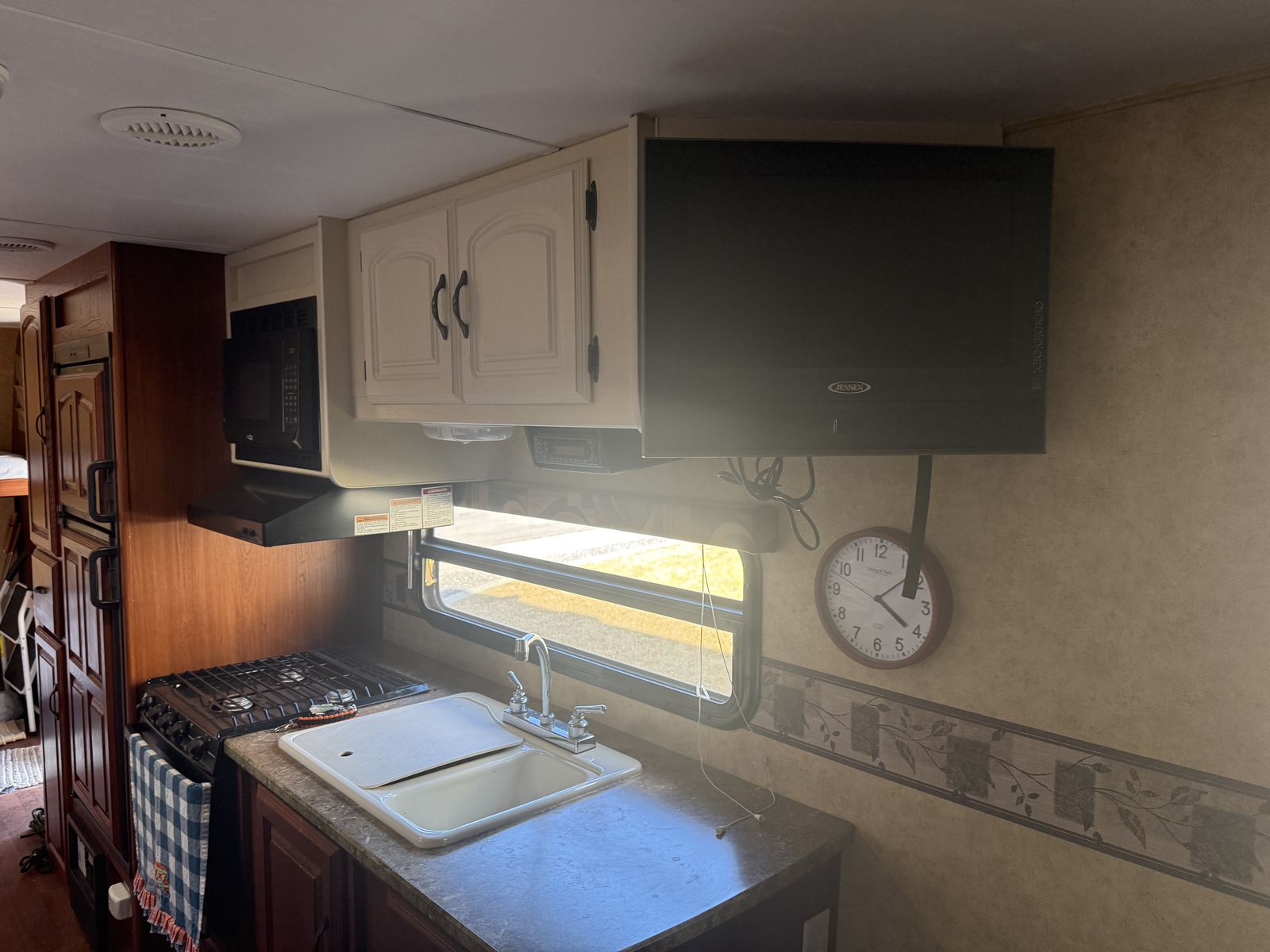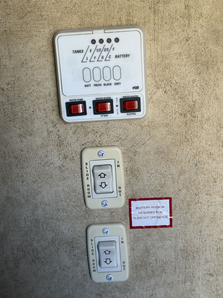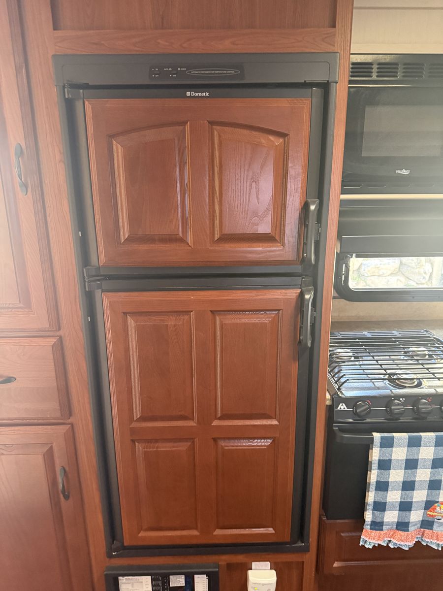 Fridge, freezer, tv, AC and heater all work. Last fall we had Adney RV and Trailer repair replace the awning - all new and never used, plus they resealed the top of the trailer due to age. No leaking. New tires two years ago and have always been covered when not in use.