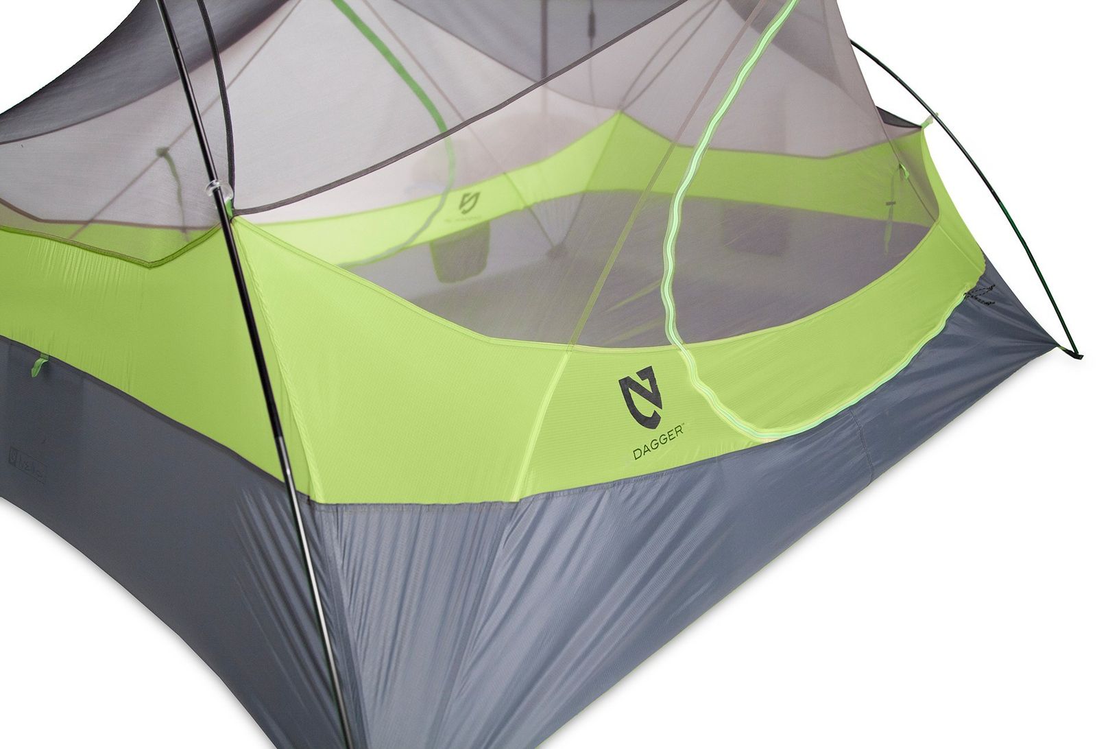**Nemo Dagger Tent Info:**The most livable backpacking tent in our line just got a little roomier. Dagger OSMO now features an updated pole structure that adds 4 inches to the door height, 2 inches to the peak height, and 22% more usable space to the vestibule. This maximized interior offers downright luxurious downtime in camp and comes at no extra weight cost.