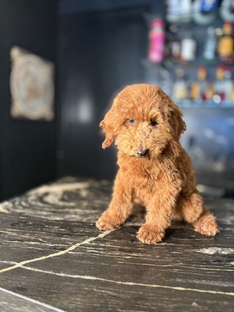 I have 2 girls and one boy of the deepest red Akc miniature poodles! They will be 20-30 pounds full grown! They are intense red and should keep their red the entirety of their lives! They are so sweet and have been socialized with young children, cats and other dogs!