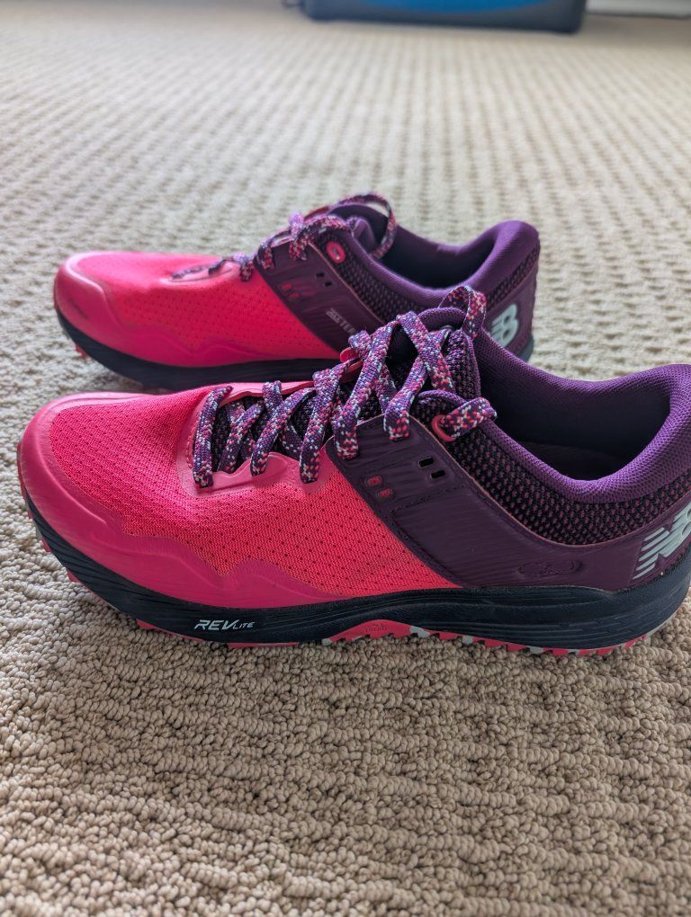 New Balance RevLite Trail Running Shoe size 8.5 worn once for a convention. They were too big as they were a gift. Super cute and comfy shoe for a trail run or daily walking.
