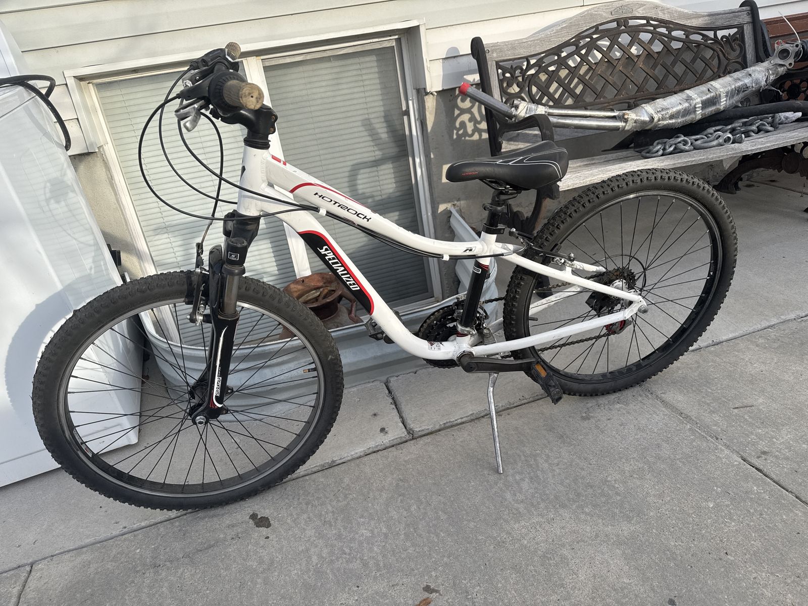 This Bike is still in good condition still in good shape, both tires hold air, pedals are good , chain is good ,seat is good, aluminum frame is still solid and has no cracks, brakes work great and shifters work great , 7x3 , 21 speed , front suspension works great rides smooth