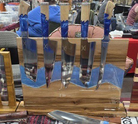 We're able to offer about any wood you can think, and any color resin you want to match either your knives or your kitchen. See Less