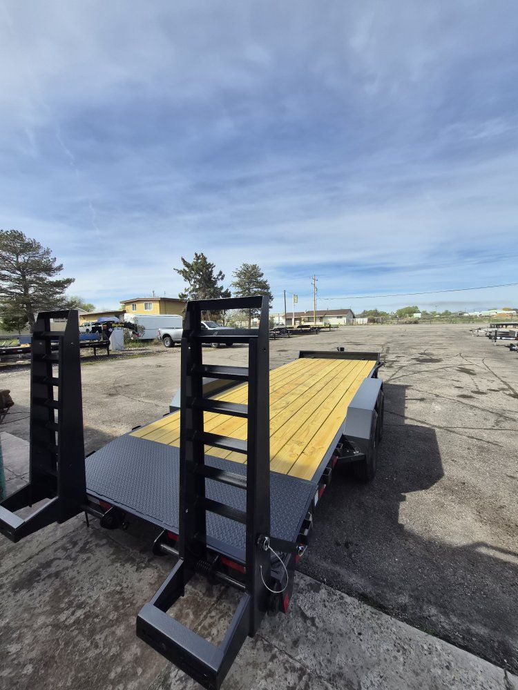 CATEGORY SPECIFICATIONS Axles (14K) 2 - 7000# Premium, Cambered Axles with Quick-Lubricating Hubs Axles (16K) 2 - 8000# Premium Hybrid, Cambered Axles Brakes Forward Self-Adjusting Electric Brakes on Both Axles Suspension Multi-Leaf Slipper Spring w/ Equalizer Tongue 6" Channel Wrap Tongue Coupler (14K) 2-5/16" Adjustable Coupler Coupler (16K) 2-5/16" Adjustable Demco Coupler Safety Chains 3/8" Grade 70 w/ Safety Latch Hook (2 ea) Jack 12,000# Top Wind,Drop Leg, Set-Back Jack Frame 6" Factory Channel Cross-Members 3" Factory Channel Front Stop Rail 3/16" Fabricated Front Stop Rail Floor 2" Treated Pine Fenders Removable Double Broke Fenders Stake Pockets Stake Pockets Along Both Sides Trailer Plug 7-Way RV Lights Recessed, Grommet-Mounted L.E.D. Lighting Wiring Sealed Modular Wiring Harness Tires ST235/80 R-16 Load Range E Radial Tires Bolt Pattern 8-Bolt Paint Type Sherwin Williams Shawn 801-309-8290