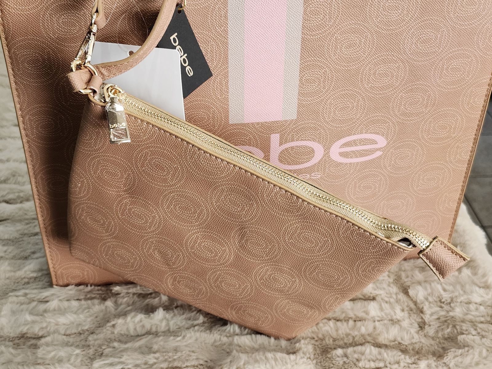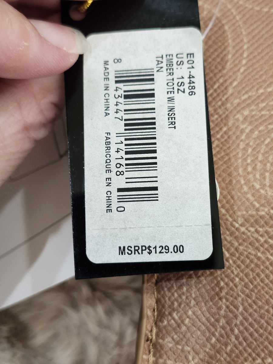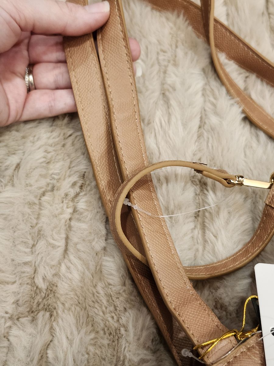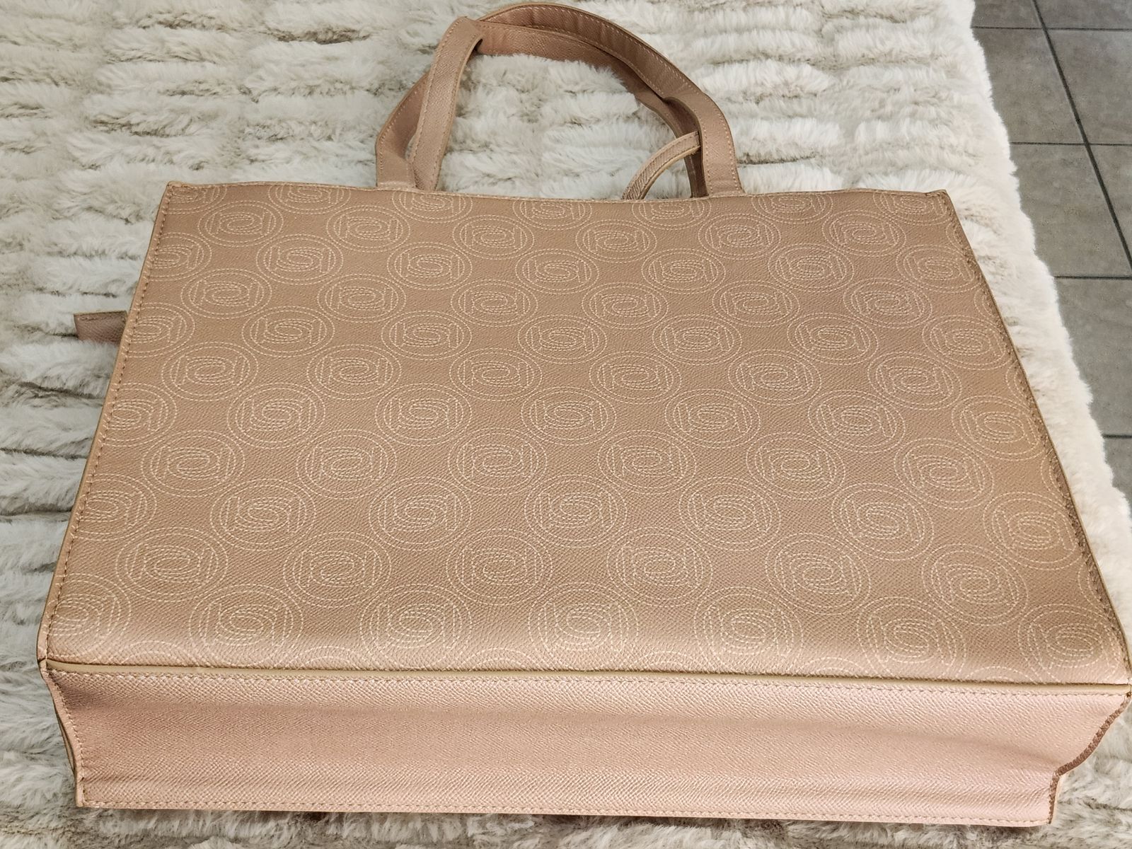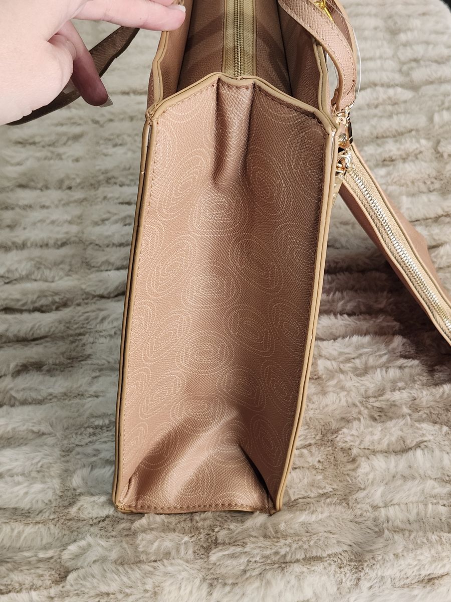 ApplePayNew with tags tan and pink vegan leather large tote bag with shoulder strap and coin pouch. MSRP $129