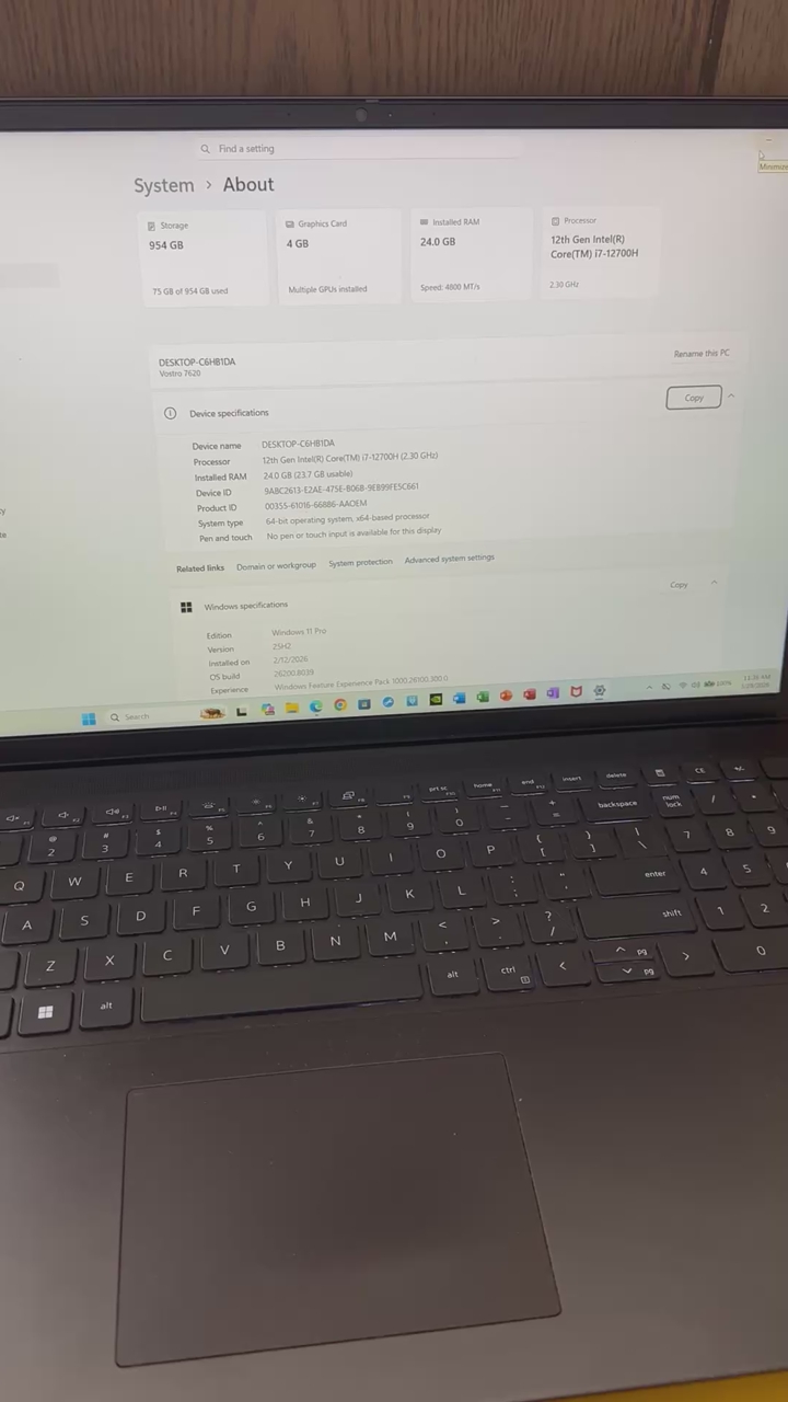 Windows 11 Pro OS latest 25H2 version,