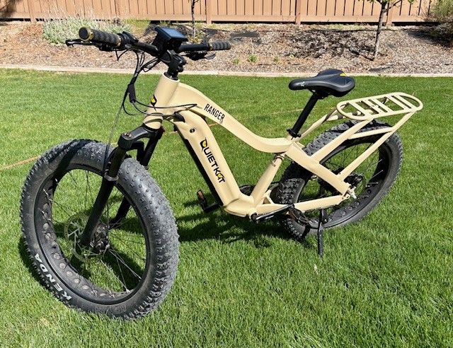 QuietKat Ranger back country ebike next to new. Only 149 original miles great condition. Includes heavy duty bike rack for class 4 hitch meant for ebikes.