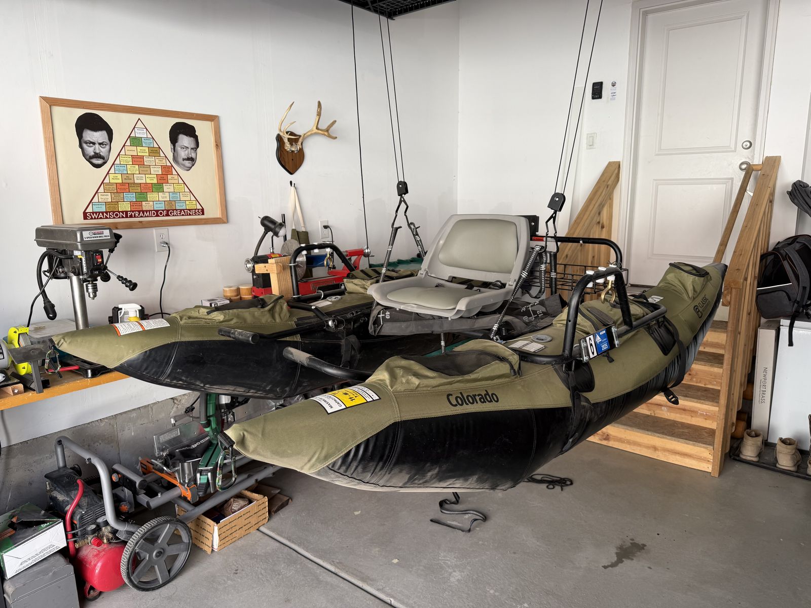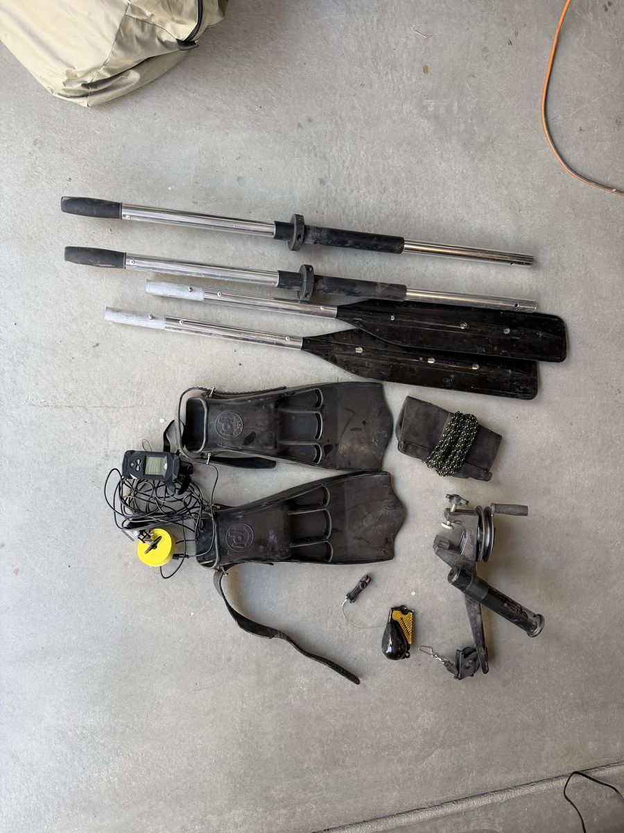 VenmoColorado pontoon fishing boat. Comes with a Minnkota 30 lb 5 speed motor with reverse. A 27DD marine battery that has been maintained in on trickle charger. Oars, flippers, fish finder, hand crank down rigger and net anchor.