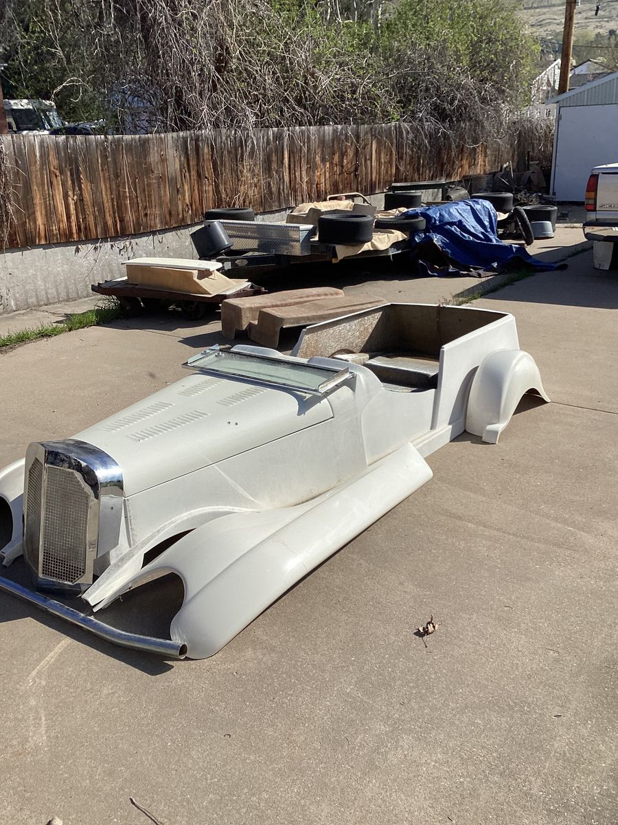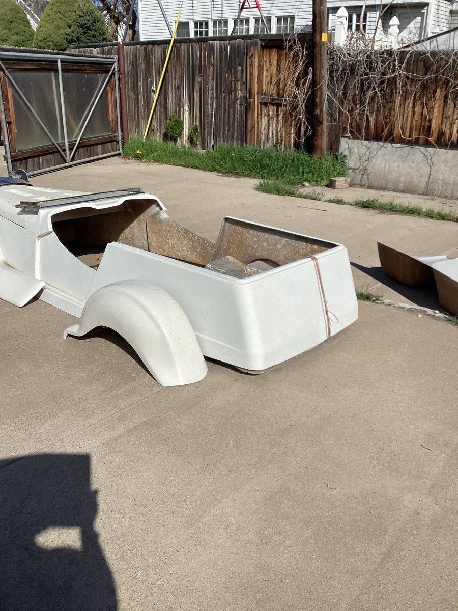 fiberglass body, including interior floor pan and trunk. Windshield, front bumper, outer doors, and grill shell are included.