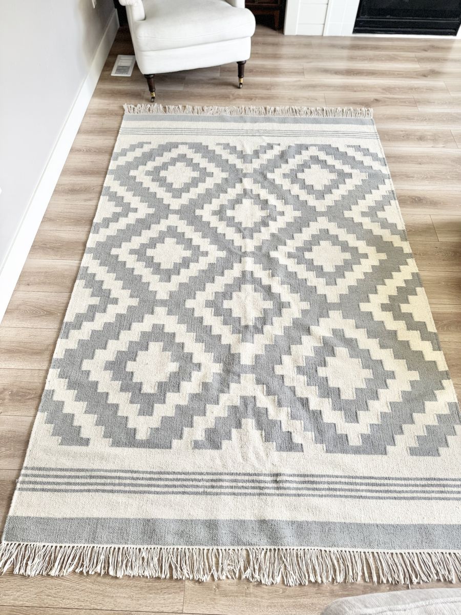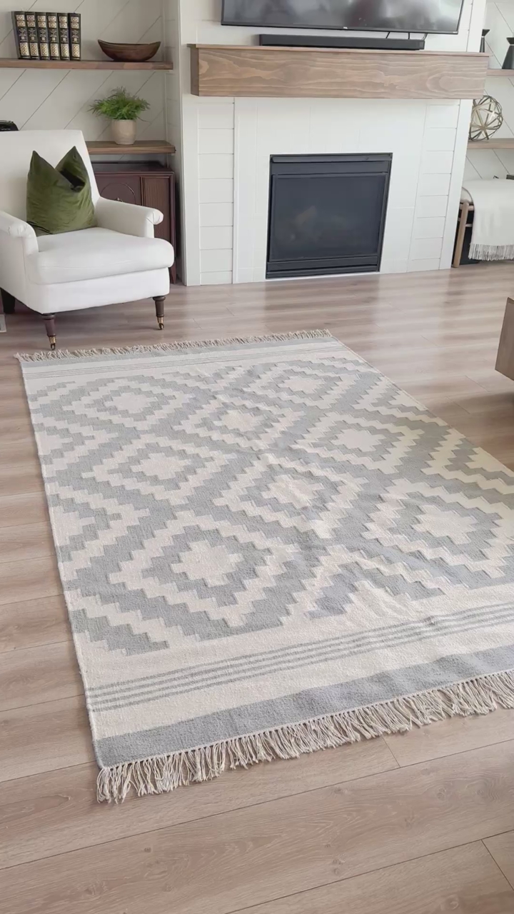 BEAUTIFUL | Wool | Area Rug | Fringe | Blue/Grey | Ivory/Cream | Home Accents | Living Room | Dining Room | Bedroom | Home Office | Floor | Carpet | Traditional | Country | Cottage | Bohemian | Boho | Modern | Contemporary | Style | Stylish | House | Apartment | Home Staging