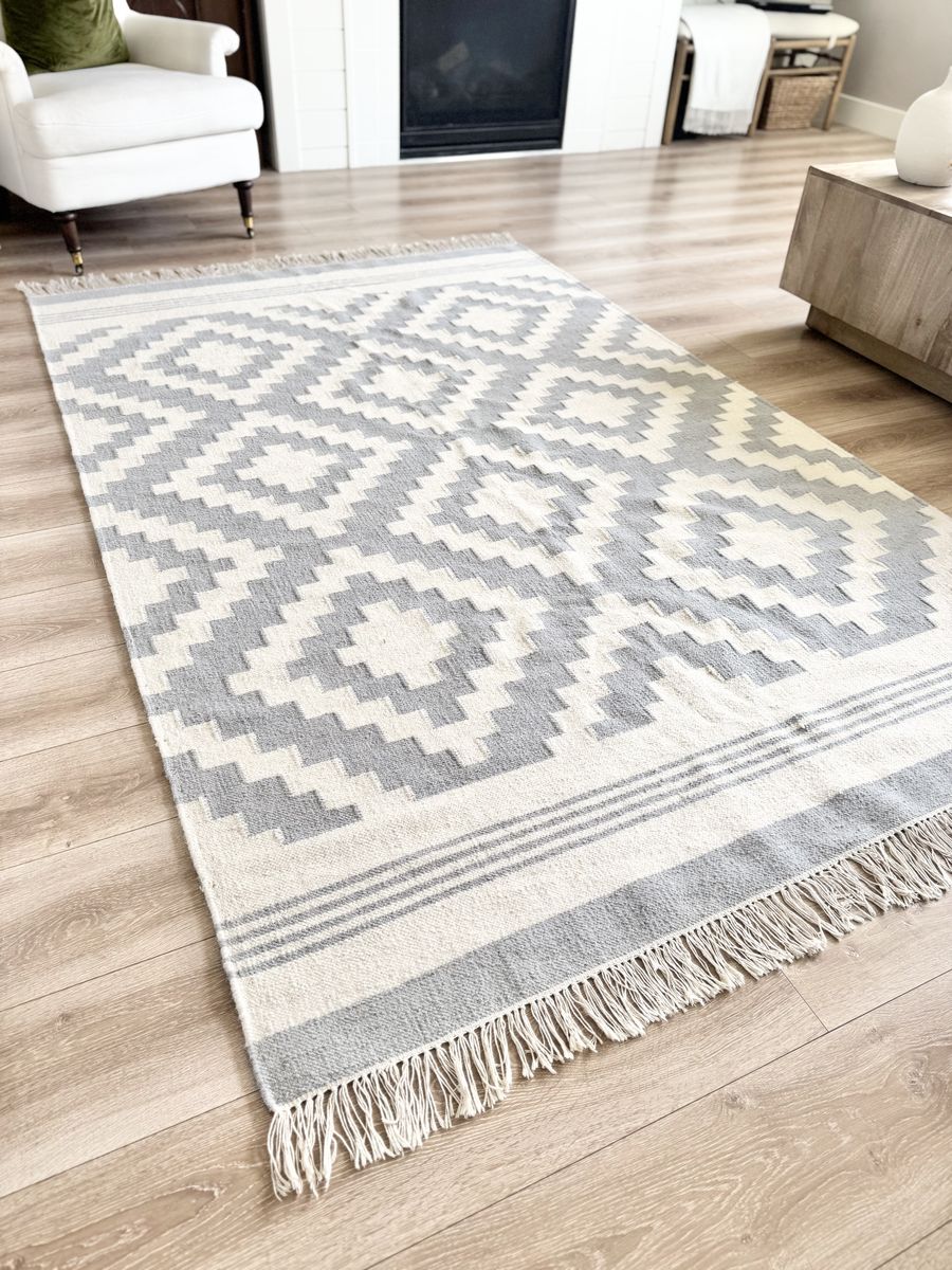 VenmoBEAUTIFUL | Wool | Area Rug | Fringe | Blue/Grey | Ivory/Cream | Home Accents | 5’x 8’