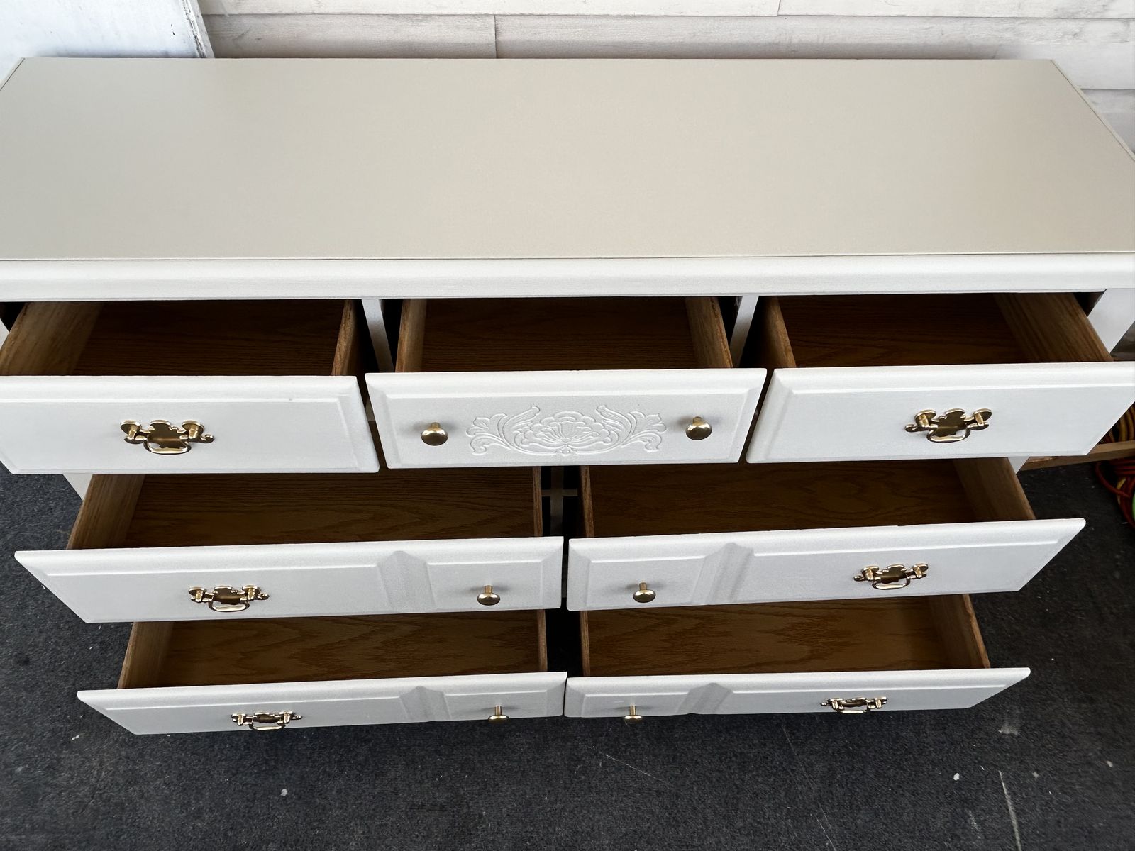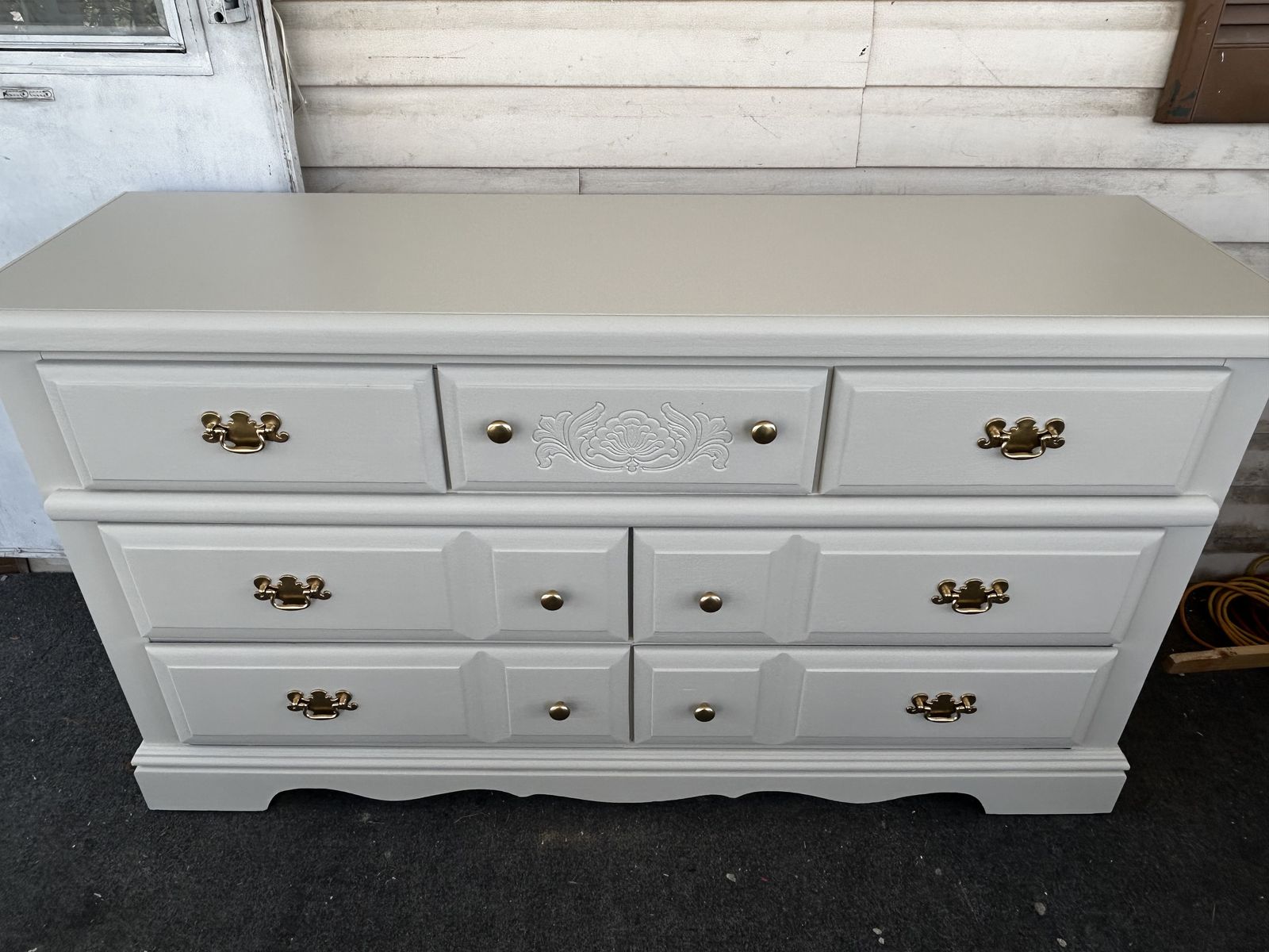 Zelle7 Drawer Dresser made of Wood, very sturdy and heavy everything works located in west valley city $250 Measurements 58” Wide 32” Tall 17.5” Deep.