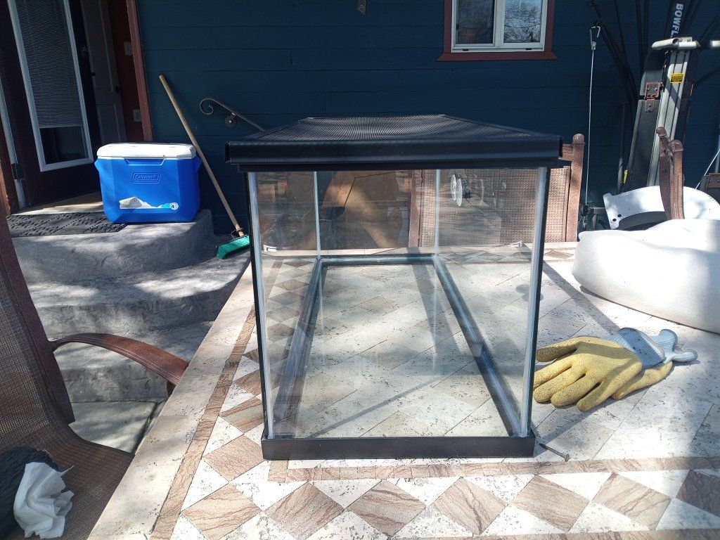 PayPal50 gallon tank, good quality, with humidity and temperature thermomoters, clean, wire top, for reptiles, can be used for aquatics as well, with/without log hideout