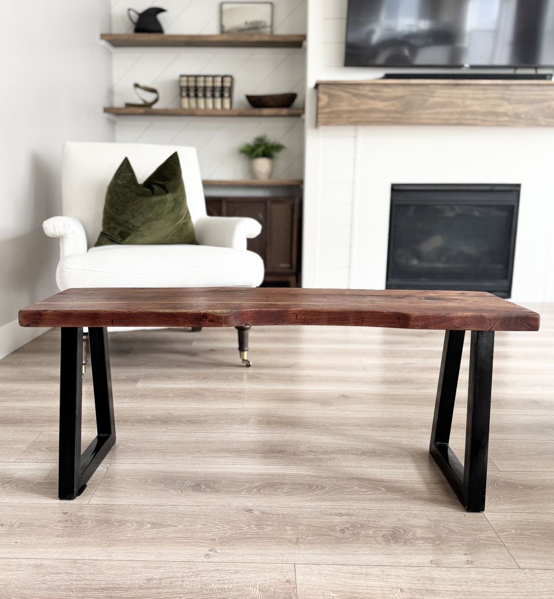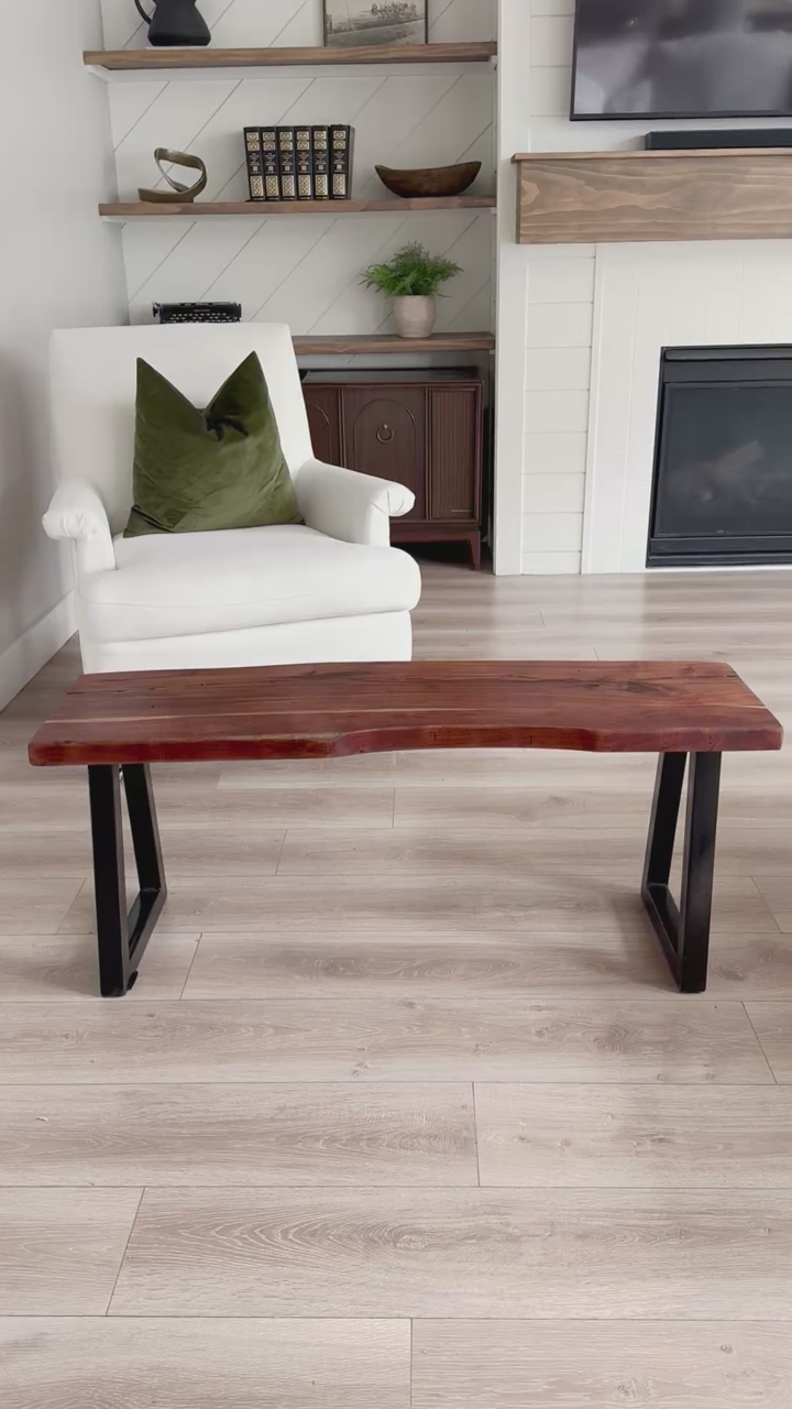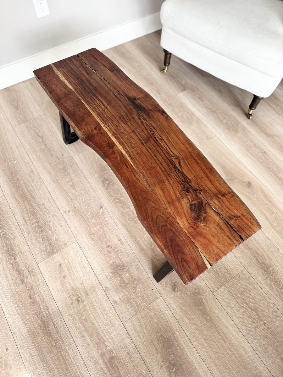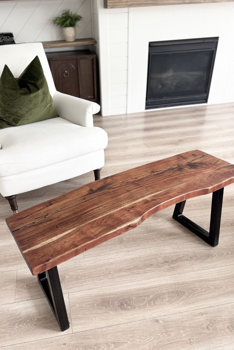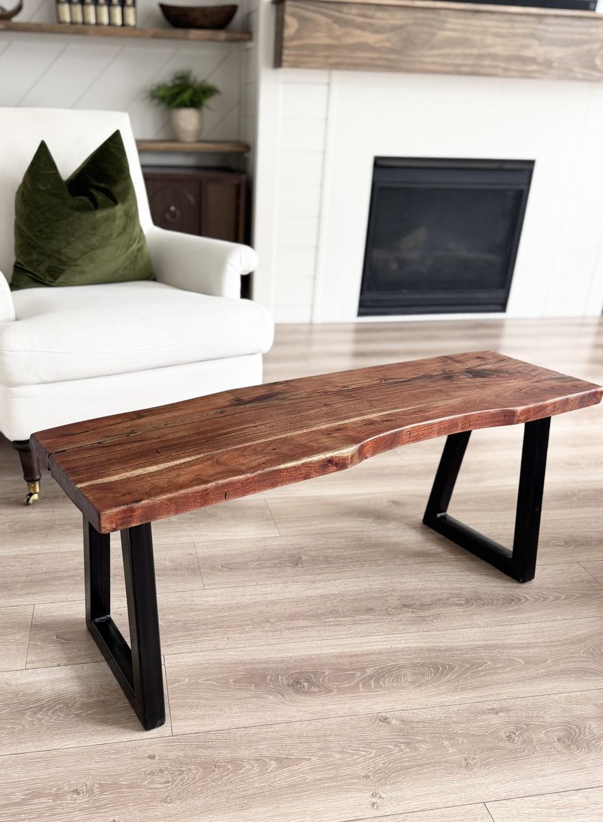 VenmoSTUNNING | Live Edge | Natural Wood | Bench | Black Metal Base | Modern | Contemporary | Minimalist