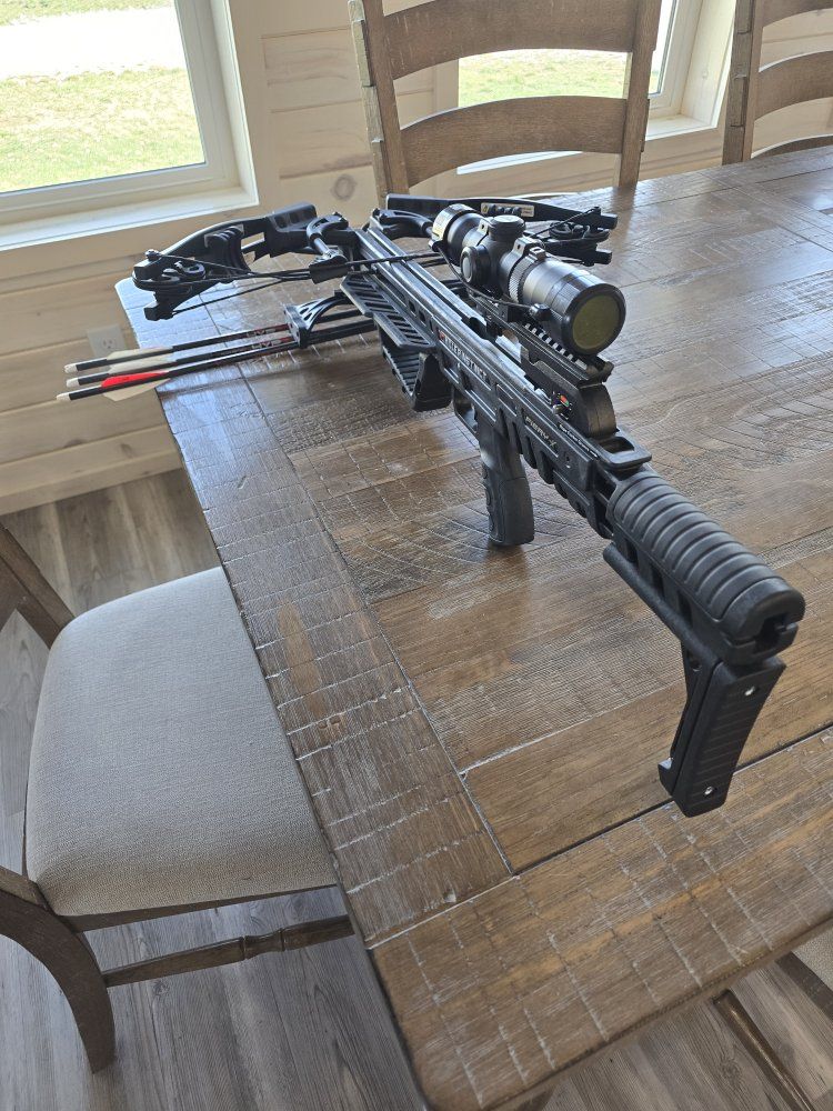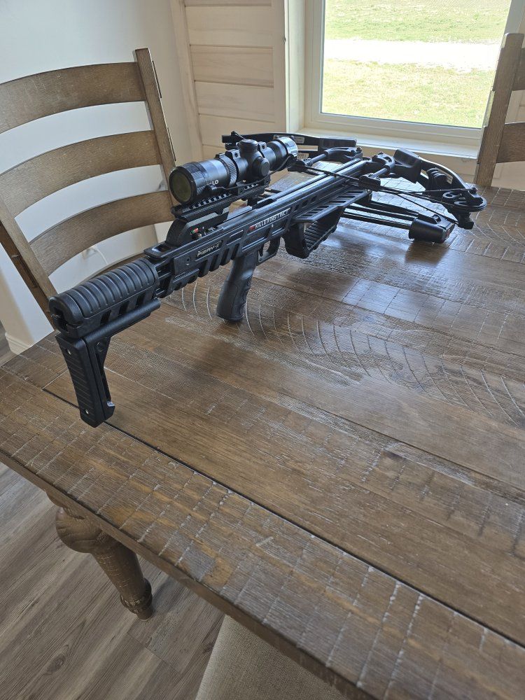 VenmoThis is a great Crossbow. I put scope from Barnett on it and it shoots great. It's light compared to other crossbows. A nice setup that's reasonable for someone getting started into Crossbow hunting. Includes the pull ropes and 3 bolts.