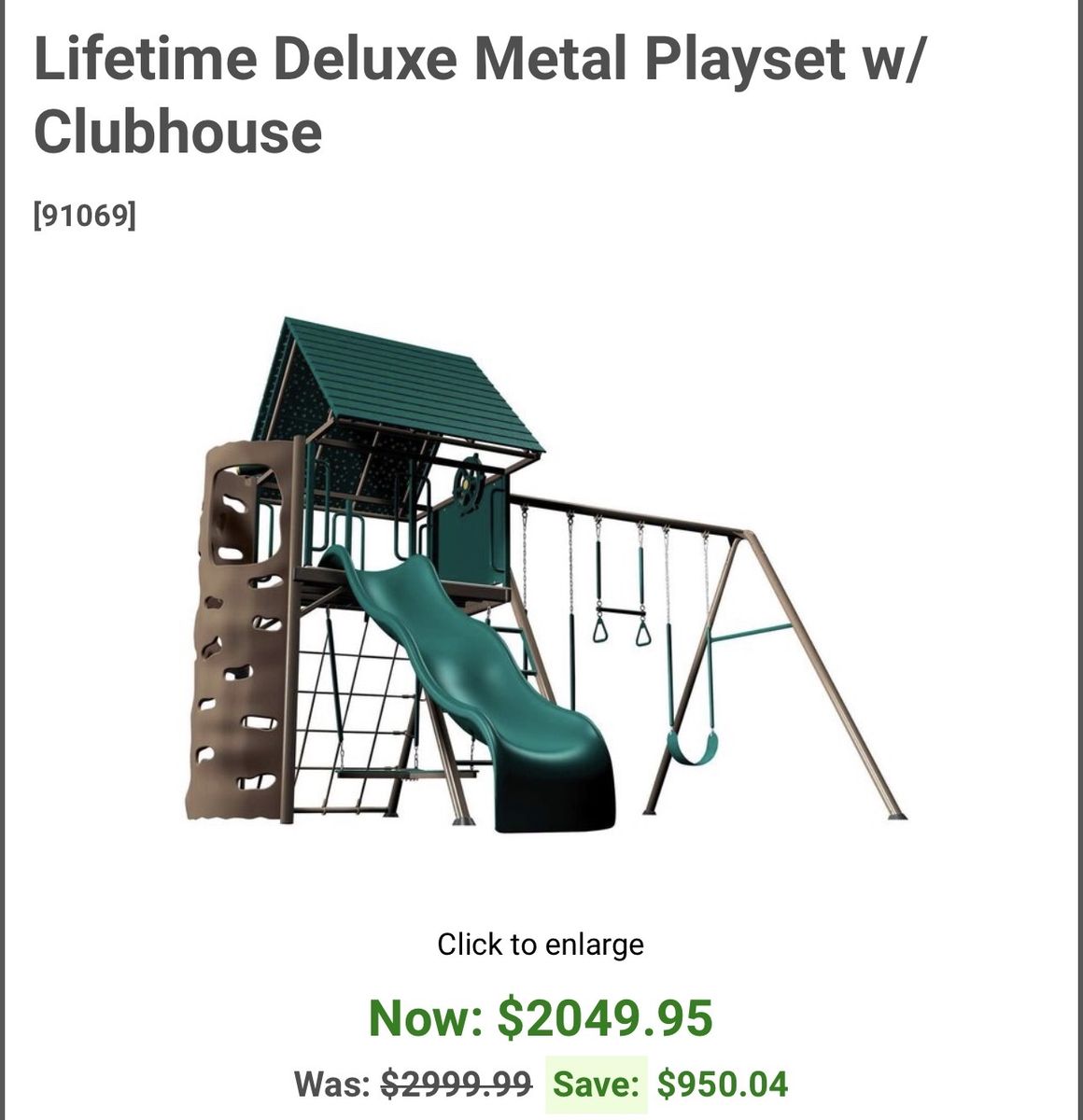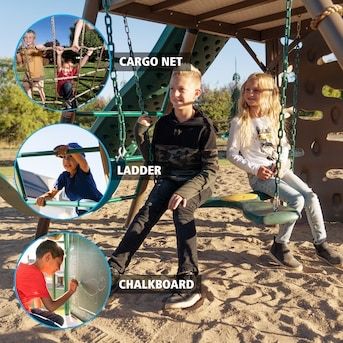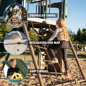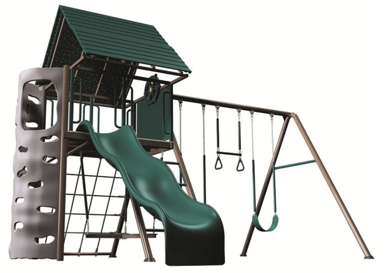 VenmoLifetime Deluxe Big Stuff Playground in Earthtone comes with 2 belt swings, trapeze swing, propeller swing, wavy slide and more!