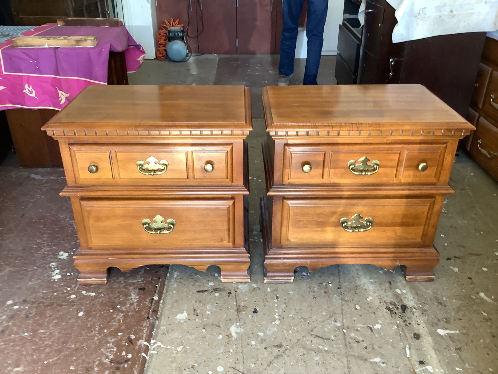 Call or text Bill at 801-721-7337. Asking $180.00 for these nightstands. Their in excellent condition, all wood with 2 drawers dovetail finished. Measurements are 24w x 24h x 17d. I live in Layton.