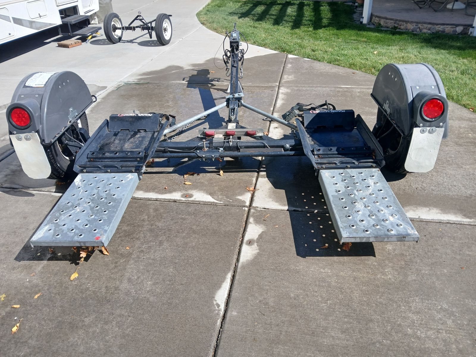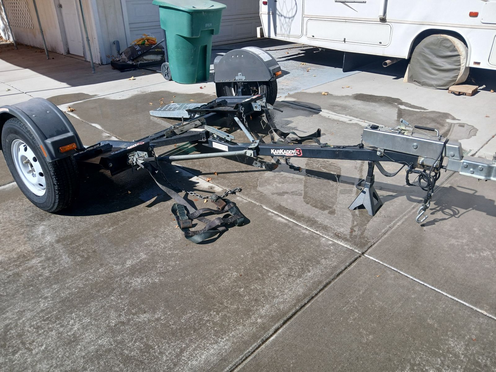 VenmoDemo Kar Kaddy 3, towing dolly,all tie downs and safchains, spare tire and magnetic lights for towed vehicle, very good condition